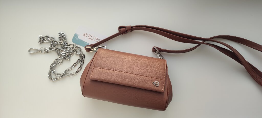 Посмотрела цвет будущего года и решила взять Мюссел в цвете уходящего 🙂 Такая сумочка-малышка. Размером вполовину Шелл. Входит: паспорт, телефон, картхолдер, ключи от дома и машины, ну или одна банка сгущёнки и по бокам место остаётся 😁 Все сумки Верфи фотогиеничны, но эта особенно — просто положила и сфотографировала, а получилось красиво. Цвет довольно интересный. Понимаю почему так сложно передать на фото, ведь даже глазом смотришь и она то шоколадная, то коричневая, то в розовинку — всё зависит от освещения. Подошла к красному, золотистому, сине-сиреневому, бежевому и кремовому, отлично смотрится с оливковым и зелёным. Мне ко всему гардеробу очень хорошо 🙂 Снова ожидание и реальность совпали. Сумка плотная, держит форму, не мягкая. На ощупь приятная. Взяла как театральную, выходила пока только один раз — очень жалко использовать как повседневную, берегу ❤️ С ремешком замечательно смотрится на вязаных вещах, для пиджаков и платьев взяла отдельно цепочку от Верфи, там вообще шик получается.