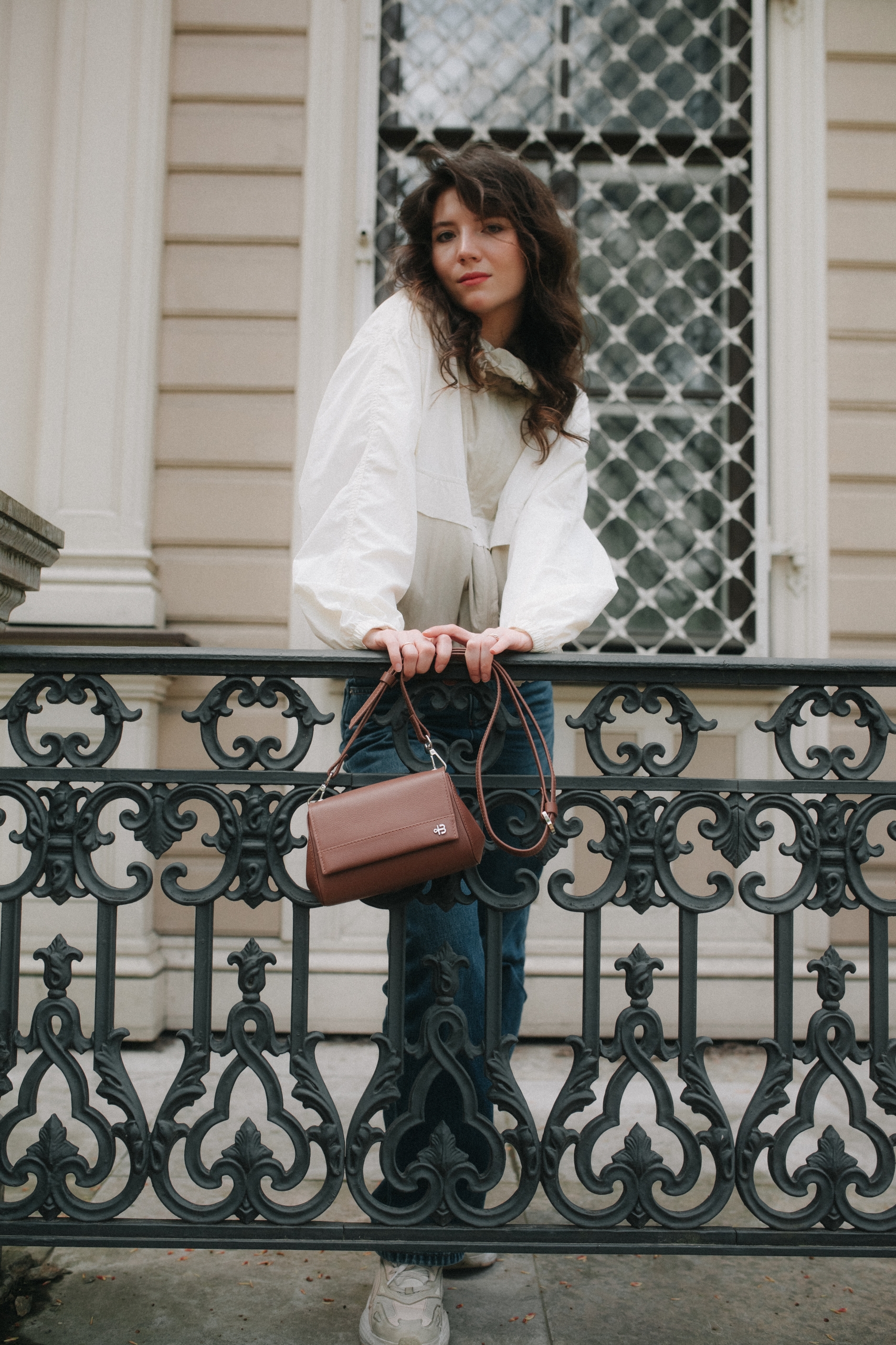Этой сумкой я абсолютно очарована! Искала давно что-то вместительное, но при этом маленькое и удобное. Брала в цвете Mocha, чтобы легко сочетать с повседневными образами. Швы ровные, кожа плотная, Werf опять выпустила чудесный продукт с отличным качеством и красивым дизайном