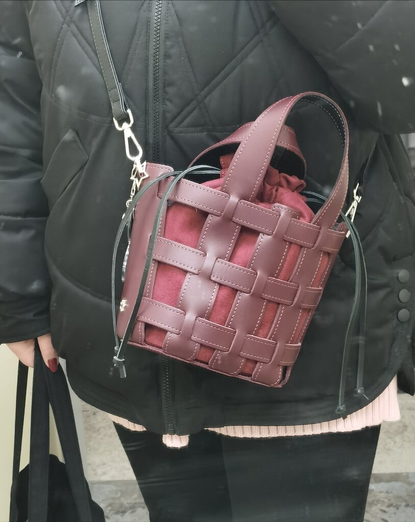 Сумочка оказалась очень удобной, несмотря на всего одно отделение. Тактильно очень приятная ткань и красивое мерцание кожи на солнце. Не планировала покупать лукошко, но увидела в магазине , потрогала и поняла, что оно мне нужно 😊