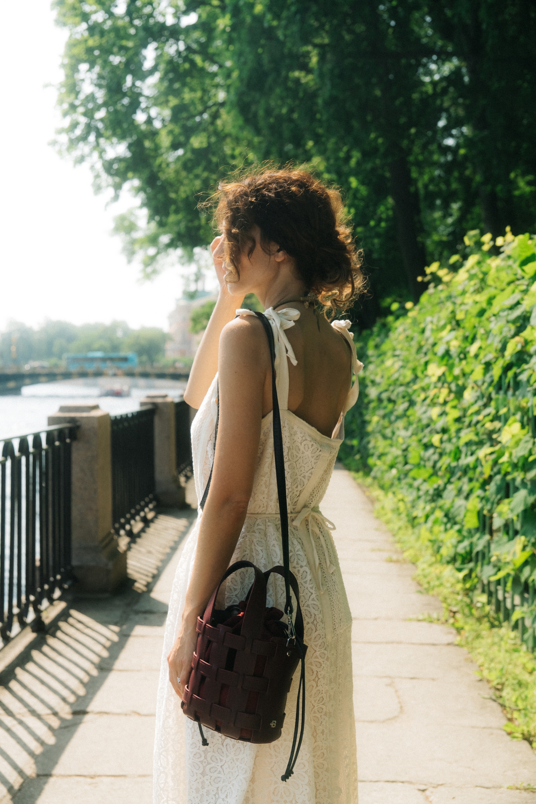 Лукошко я увидела в магазине и оно запало мне в сердечко. Такая милая и красивая сумка, сразу придумала два образа с ней!