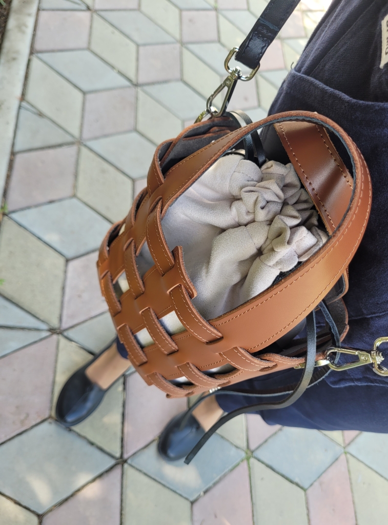 я получила свое лукошко, оно очаровательное! я не знаю что у меня с глазомером, но мне все мелкие сумки верфи на фото и видео кажутся на 3-4 см больше по размерам, чем они в реальности. и только с каравеллой и топ хэндлом у меня совпали ожидание и реальность )) но лукошко очень милое и всё необходимое в него влезет — бутылочка для воды 0.33, ключи, телефон, кошелек, паспорт. Сумка чисто летняя, конечно, для прогулок. Пойдет в стиль сафари, в романтичный с платьями и сандалиями, в кэжуал. Вот фото, может просто кому-то поможет сориентироваться, сумочка вместительная несмотря на то, что малышка, всё необходимое влезает, на фото бутылочка .0.33. Желаю много заказов, чтобы у ребят из теплого приема всегда была работа и возможность вернуться в нормальную жизнь!