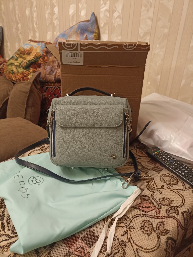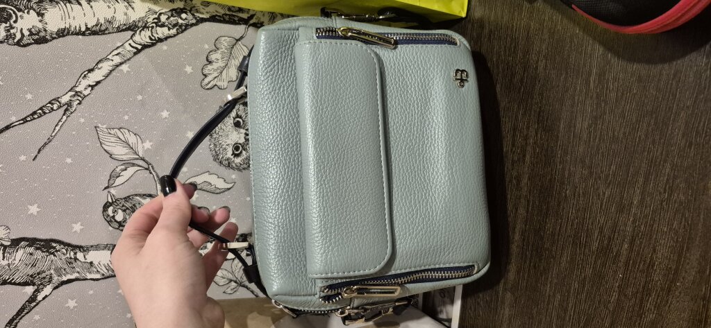 Спасибо за ваш подробный отзыв! Мы очень рады слышать, что сумочка оказалась функциональной и удобной, а также что вам понравился серо-голубой цвет и забавный брелок.