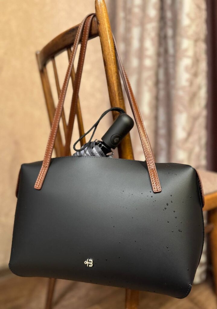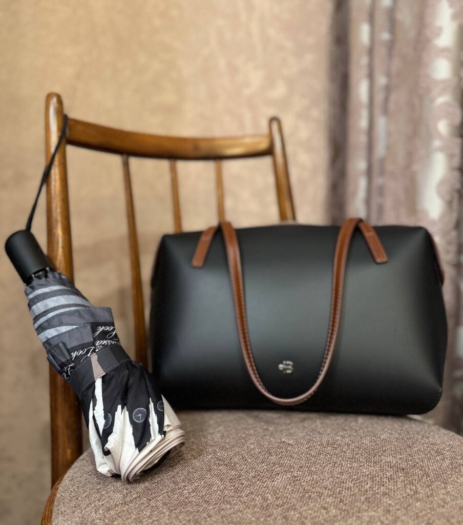 Теперь моя самая любимая сумка! Давно искала идеальную черную сумку, и, наконец, нашла. Несмотря на размеры очень вместительная за счёт своей формы, коричневые ручки добавляют изюминку. Спасибо большое!