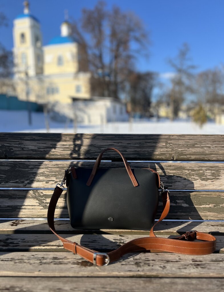 Идеальная сумка, сочетание благородного черного с коньячным можно сравнить с цветовой гаммой симфонического оркестра, форма, линии, качество,- все на высоте! Подходит под множество образов, всесезонная, точно будет самая любимая!