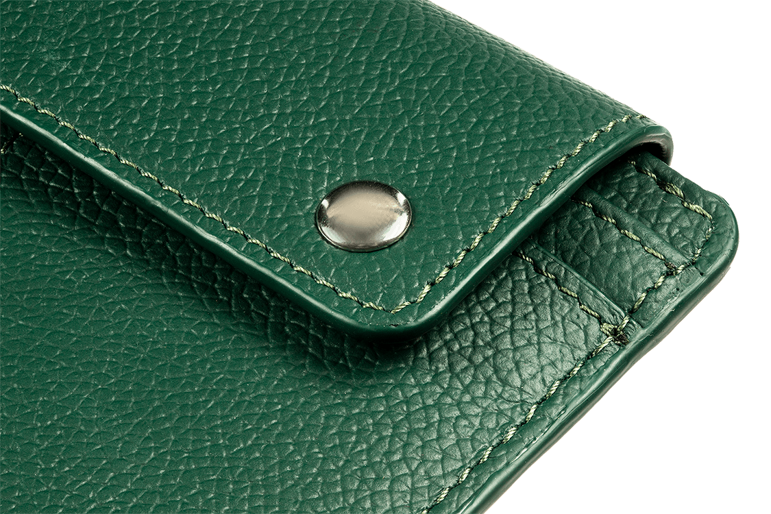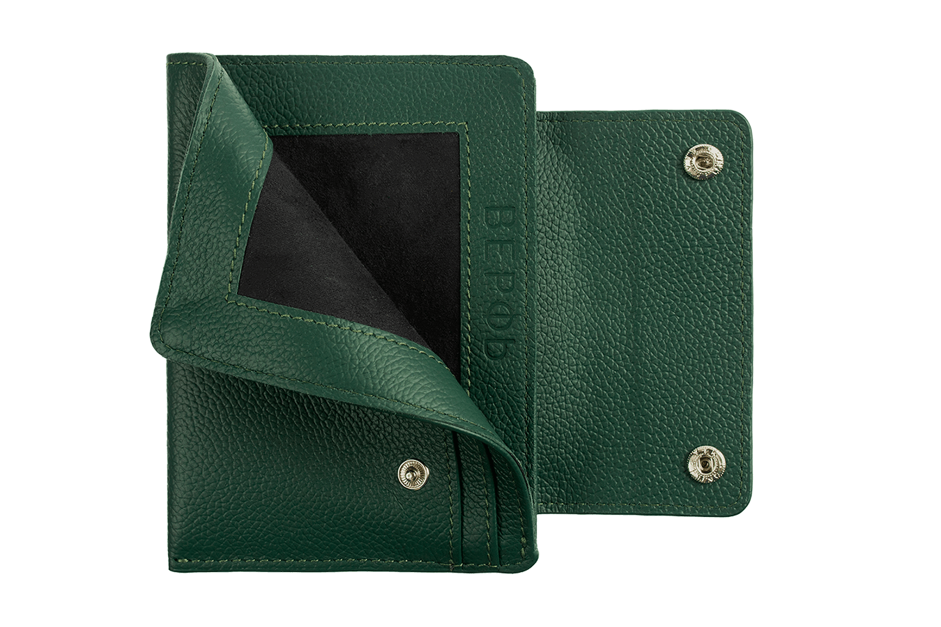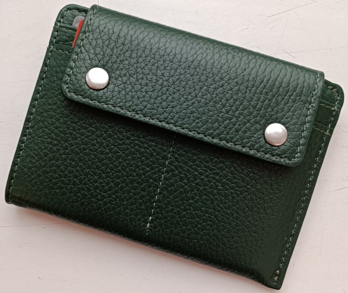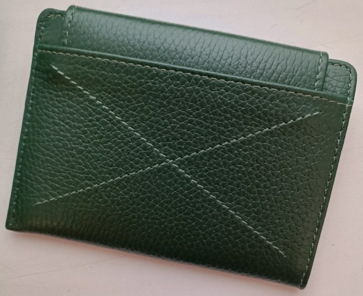 Мне подарили зеленый, все мои карточки и документы поместились. Пока немного туговат, надеюсь разносится и станет мягче. Муж носит черный, в нем мягче кожа. По крайней мере по моим ощущениям.
