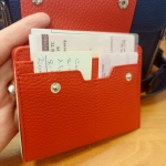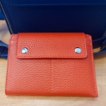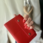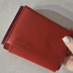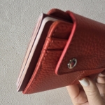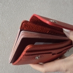 Теперь самый любимый мой кошелек. Убирается в любую сумку. Купюры кладу во второй большой кармашек, в маленькие кармашки для для карт: в один — карты, в другой мелочь. В задний кармашек убирается несколько визиток. Все необходимое на своих местах. Кожа мягкая, приятная. Цвет красный — очень красивый. Рекомендую к покупке. К большому кошельку возвращать не хочется.