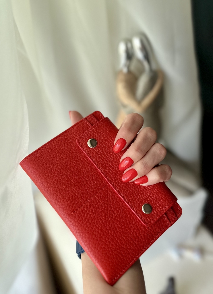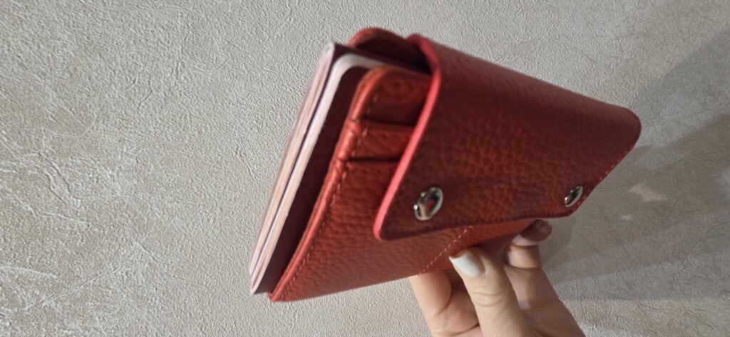 Благодарим за отзыв! Приятно знать, что кошелек удобен для хранения документов и радует глаз. А идея с маникюром в цвете «маяк» просто замечательная!)