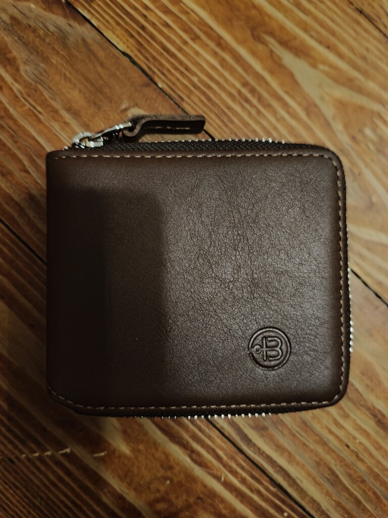 Очень приятная кожа и форма. Функционал подразумевает отделения для монет, купюр и карточек.