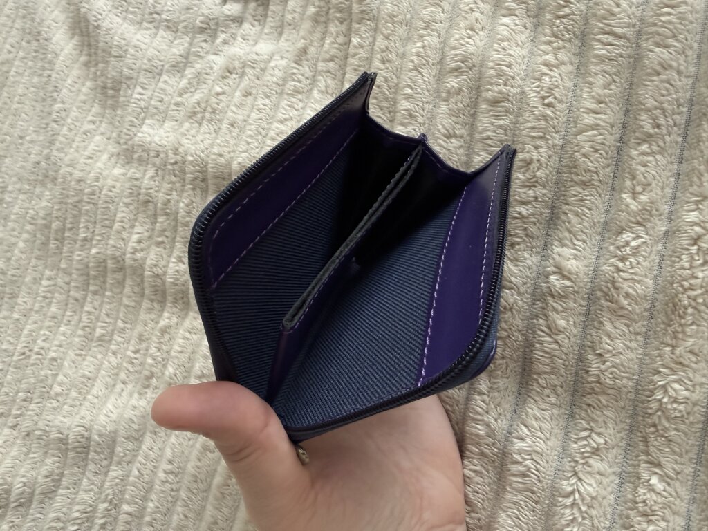Это была любовь с первого взгляда. Выделка кожи отличается — у фиолетового кошелька она прям гладкая, у других моих изделий более рельефная. Красивый, удобный, эргономичный, со множетсвом отделений (в таком малыше то!!). Крайне удачное приобретение