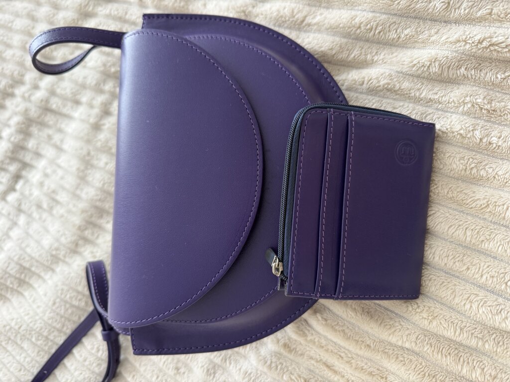 Мне очень понравился кошелечек, это то что я искала, чтобы по минимуму отделов легкий и мелкий, но при этом было место и для мелочи и для купюр, их много не носим сейчас, поэтому не хотелось большой.. цвет перпл коварный для фото — он уярчается, в шкафу больше похож, зато темно малиновый пиджак стал фуксией)) упаковка очень понравилась, надежная коробка такая презентабельная и пыльник добротный