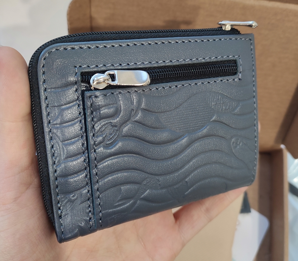 Компактный кошелечек, но вместительный. Помещается в маленькую сумочку. Кожа очень приятная тактильно. Тиснение нерпами просто восторг