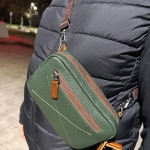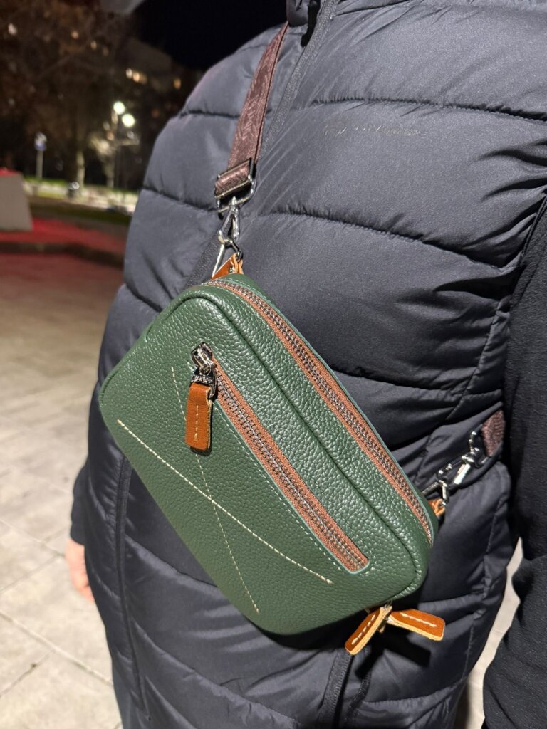 Купила два бумбага — этот зеленый и коричневый. Себе и мужу. Думала, поделим мирно.И именно зеленый оказался яблоком раздора. Понравился обоим! Невероятно красивая и уютная, вместительная, кармашек, удобный ремень. А вот коричневый огорчил…кожа жестковата, судя по глянцу легко царапается… Лучше б взяла два зеленых…:-(