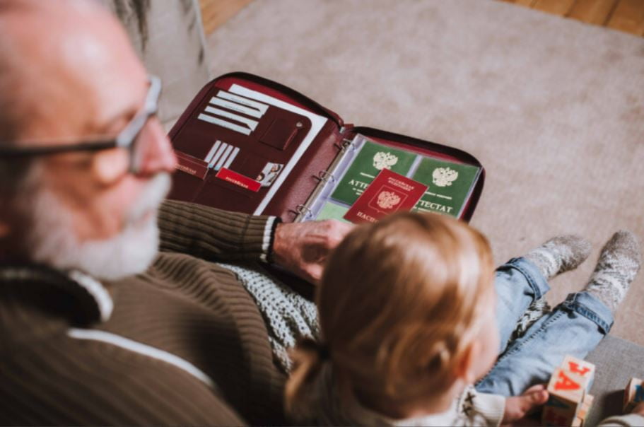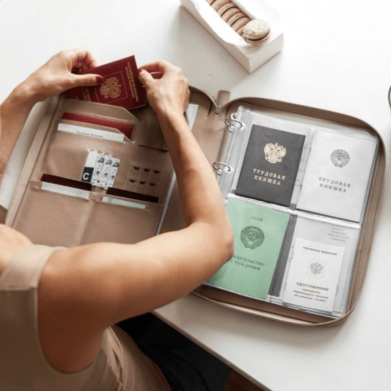 Мы взяли все домашние документы, нашли каждому свое место и завернули это в красивую оболочку – папку из кожи. Причем разделили документы на то что нужно, чтобы было под рукой (паспорта, СНИЛСы), на документы первого порядка (ИНН) и те, которые используются редко (военные билеты, свидетельства и прочее). И запустили в свет.