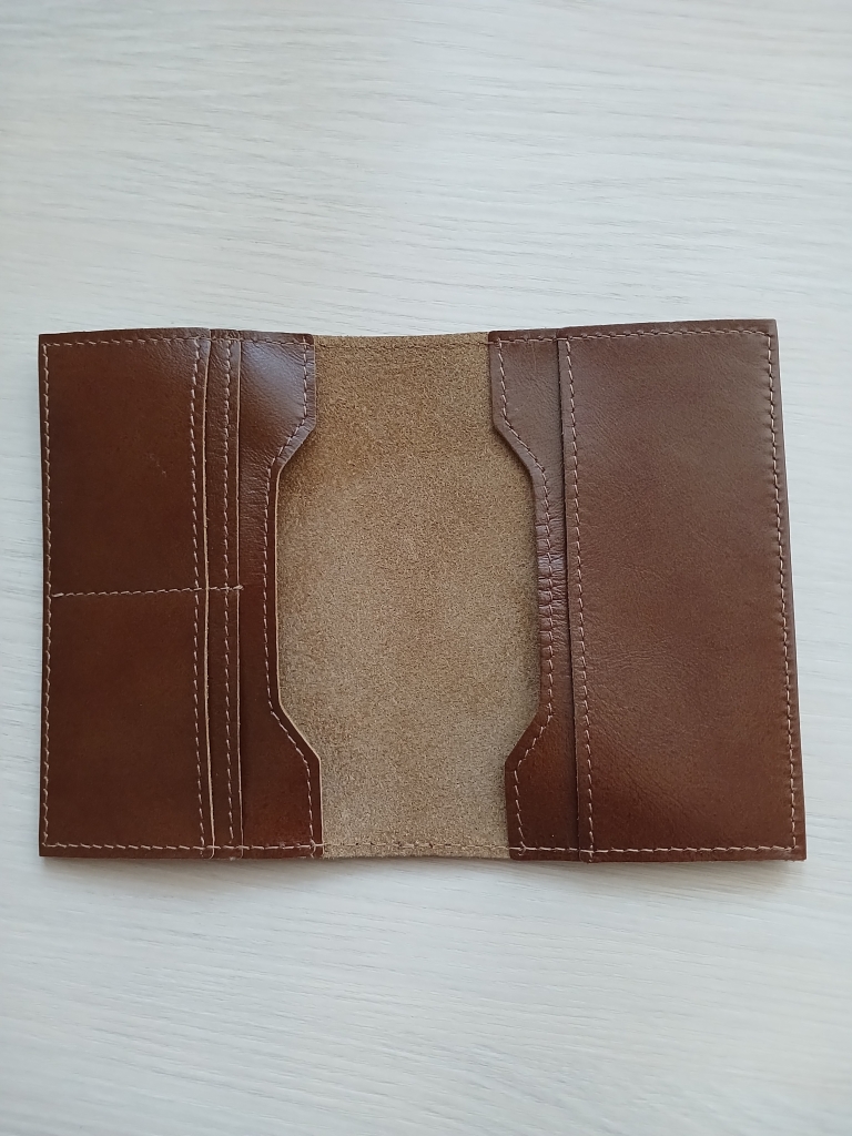 Купил себе и жене. Качественный пошив, мягкая кожа. Отделения для карточек несколько мелковаты — когда паспорт складываешь, они почти достают до сгиба. В остальном — отличная работа. Но если бы на обложке было выдавлено слово «Паспорт РФ», было бы лучше