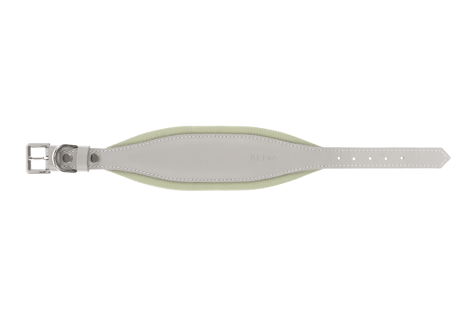 Ошейник с расширением спереди. Выполнен из натуральной кожи двух видов и оснащён мягкой подушкой. Ошейник селедка подходит для собак с тонкой длинной шеей.