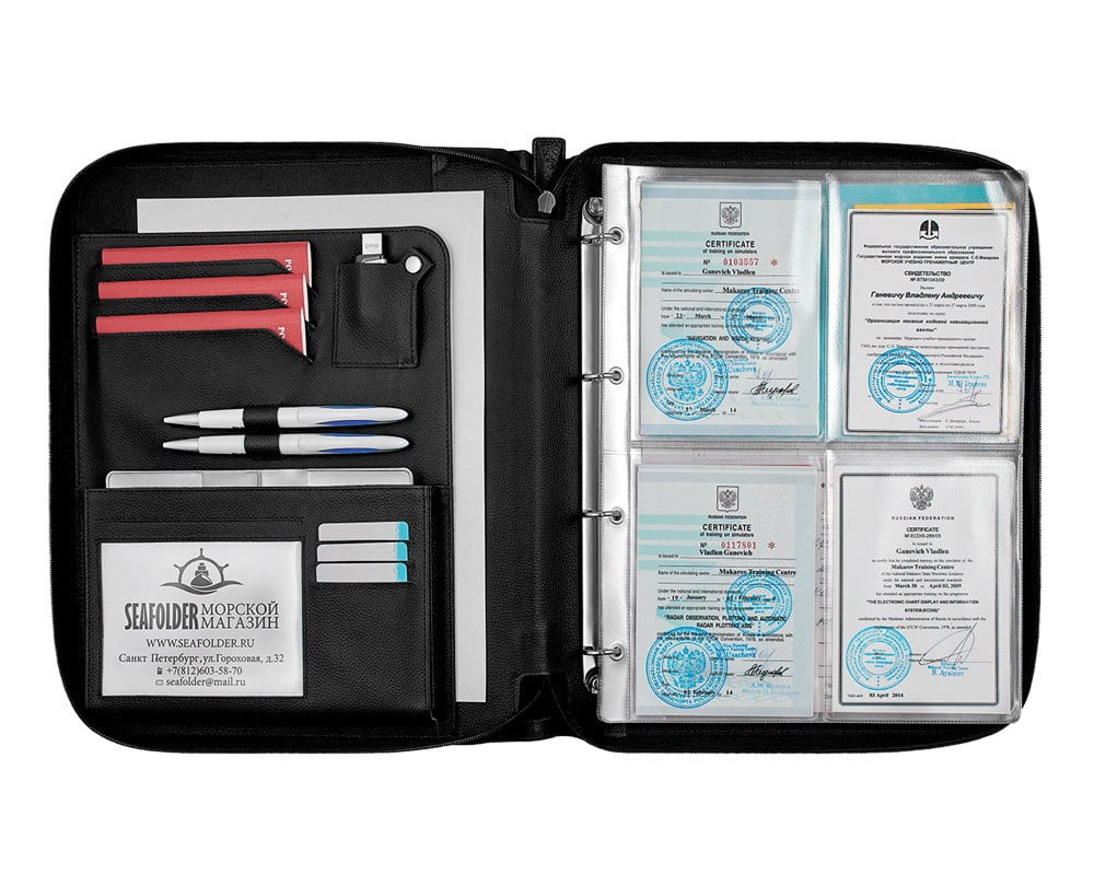 Папка выше всяких похвал!! Качество супер! Вместимость отличная))) Для моряка самое то) Если есть куча сертификатов разных форматов — лучшего решения просто не найти! Ещё раз спасибо!!