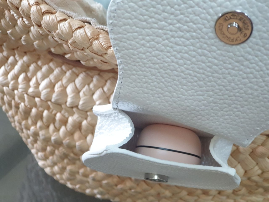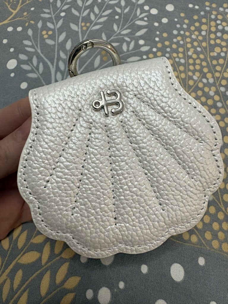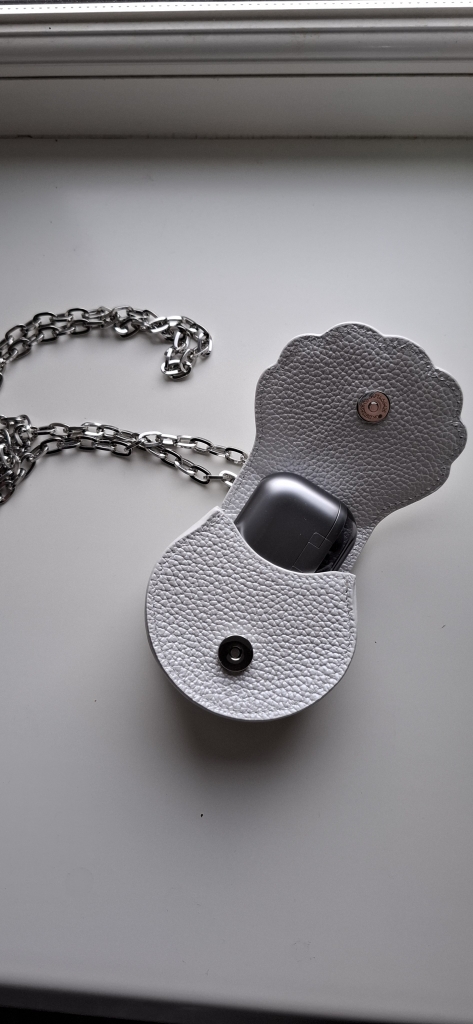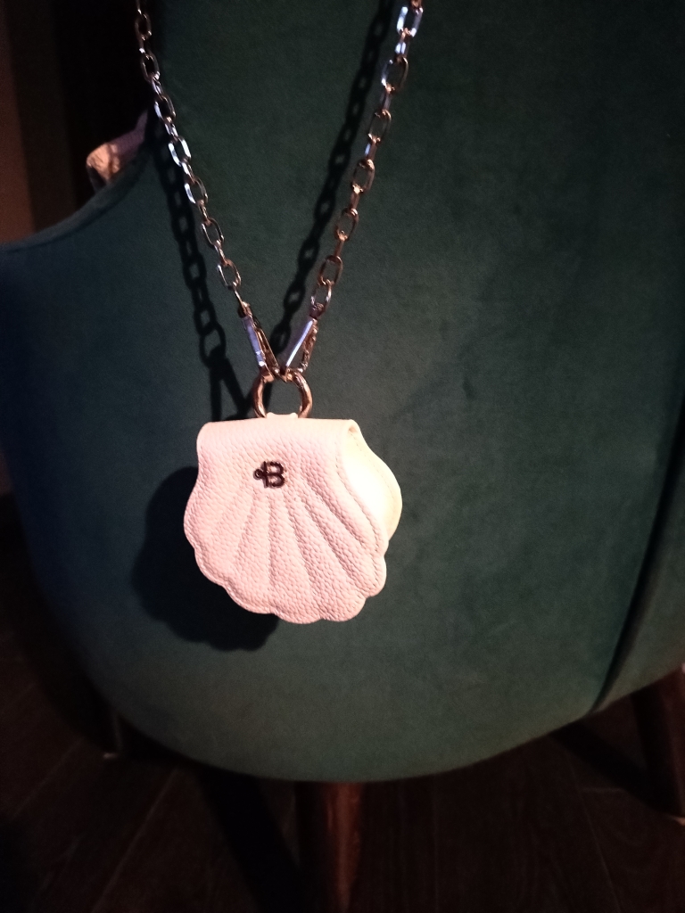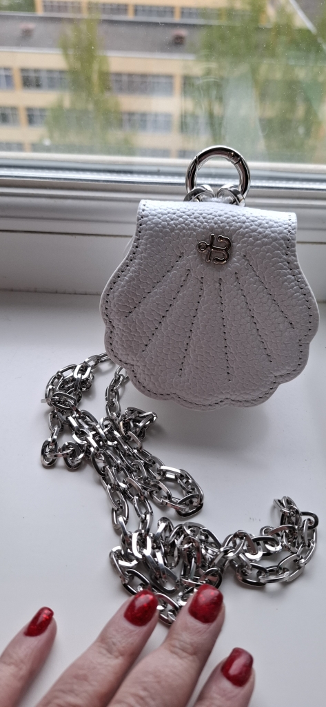 Считаю эту ракушку шедевром, настолько это стильный аксессуар. На сумке, на рюкзаке, даже просто отдельно как мини-сумочка в дополнение к bumbag, как говорится — во всех ты, душечка, нарядах хороша. Наушники идеально туда помещаются со своим кейсом, не выпадают, сумочка случайно не открывается, кнопка хорошая.