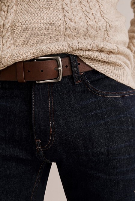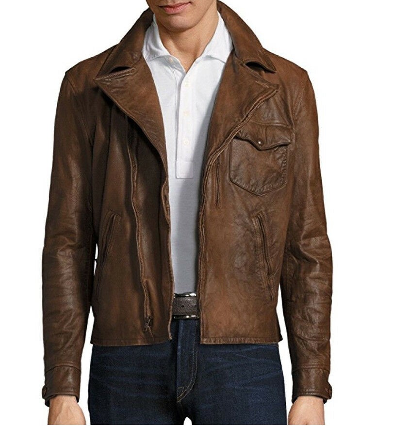 Как например, этот образ от бренда John Varvatos, часто делающего ставку на изделия из состаренной кожи. Темно-синие джинсы идеальной посадки, белая лаконичная рубашка, а также потрясающего кроя и качества косуха из состаренной кожи благородного оттенка кубинских сигар. Есть ли лучший способ добавить брутальную нотку в такой весьма повседневный образ ?