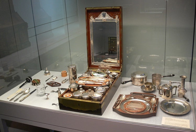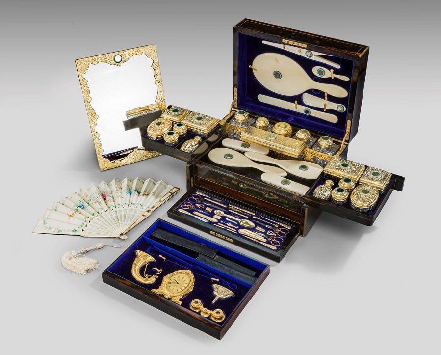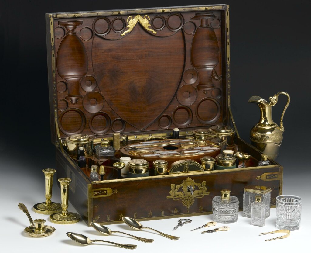 Отсюда и первоначальное название – nécessaire de voyage (фр.), означавшее «все необходимое для путешествий». Первые несессеры были похожи на квадратные или прямоугольные косметические кейсы и преимущественно выполнялись из дерева разных пород. Размеры несессеров были весьма внушительны. Еще бы, ведь такой кейс должен был вместить в себя не только средства личной гигиены и парфюм, но и множество прочих необходимых в путешествии мелочей. Среди них могли быть писчие принадлежности, посуда и столовые приборы, и даже чайник или подсвечник.
