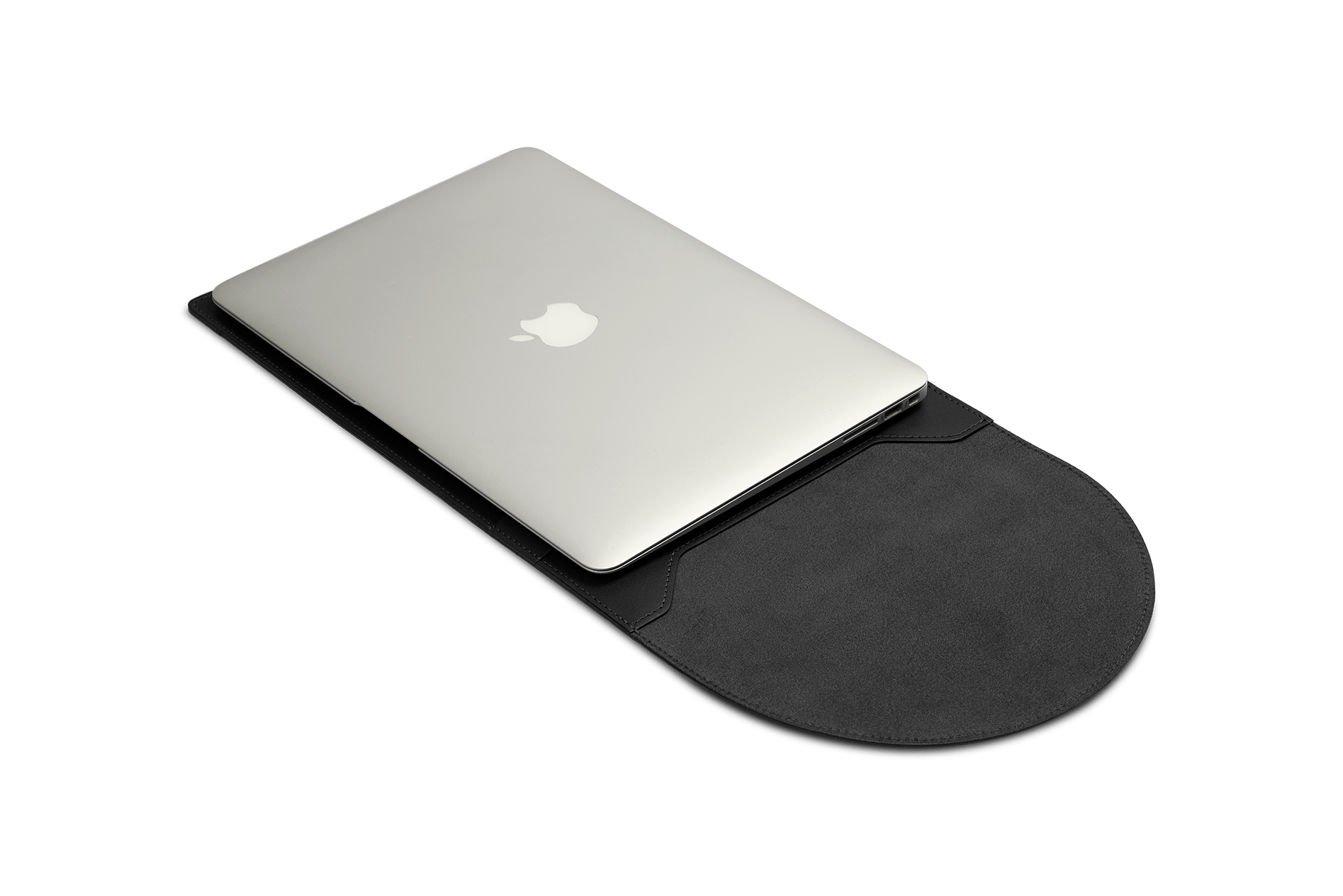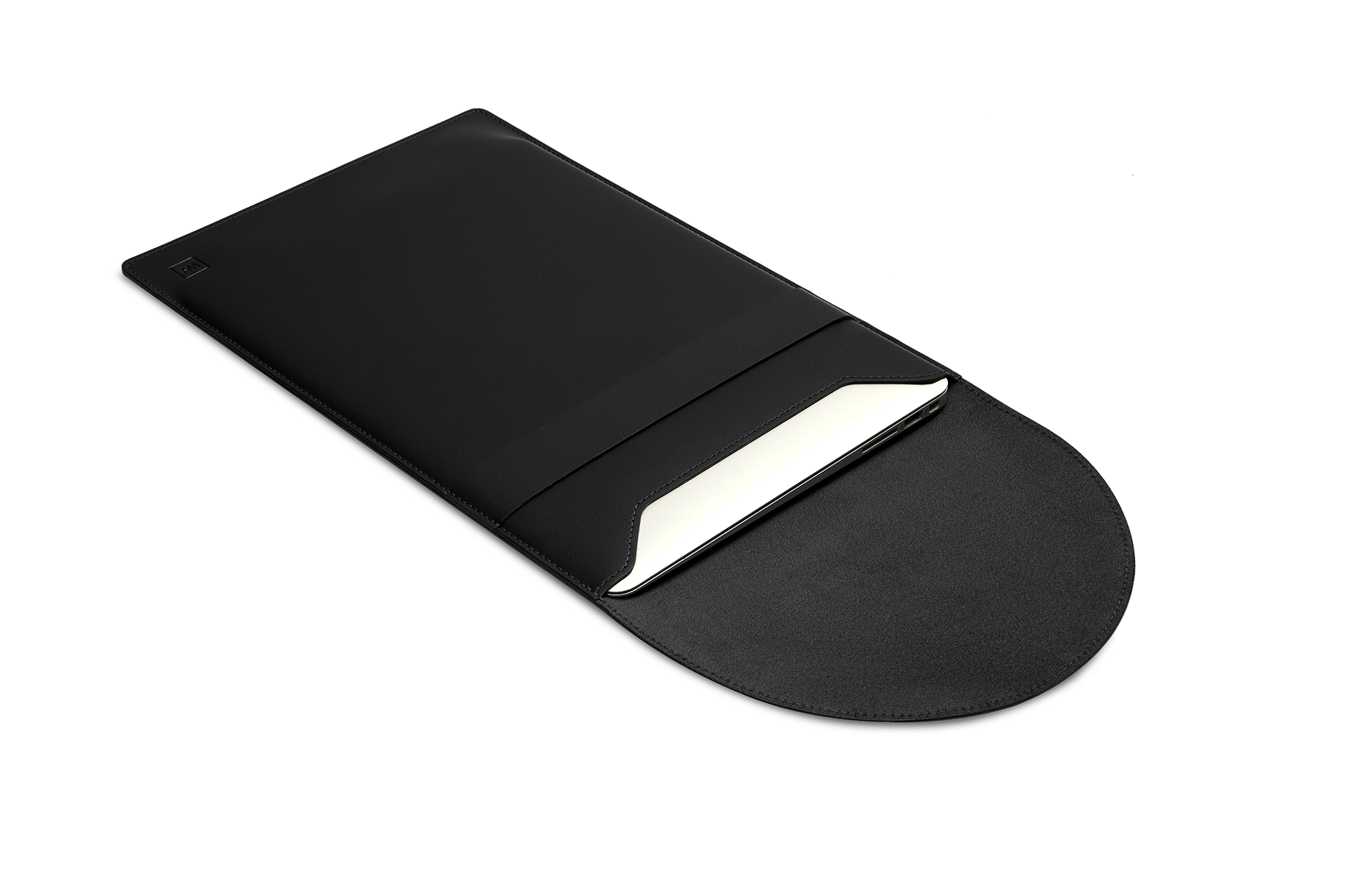 Внутренняя часть изделия выполнена из мягкой ткани, защищающей ноутбук от царапин и потертостей. Внешнее покрытие приятное на ощупь и не скользит в руках. Крышка чехла удобно закрывается и фиксируется с помощью кожаной полоски на лицевой стороне изделия, не позволяя устройству выпасть.
