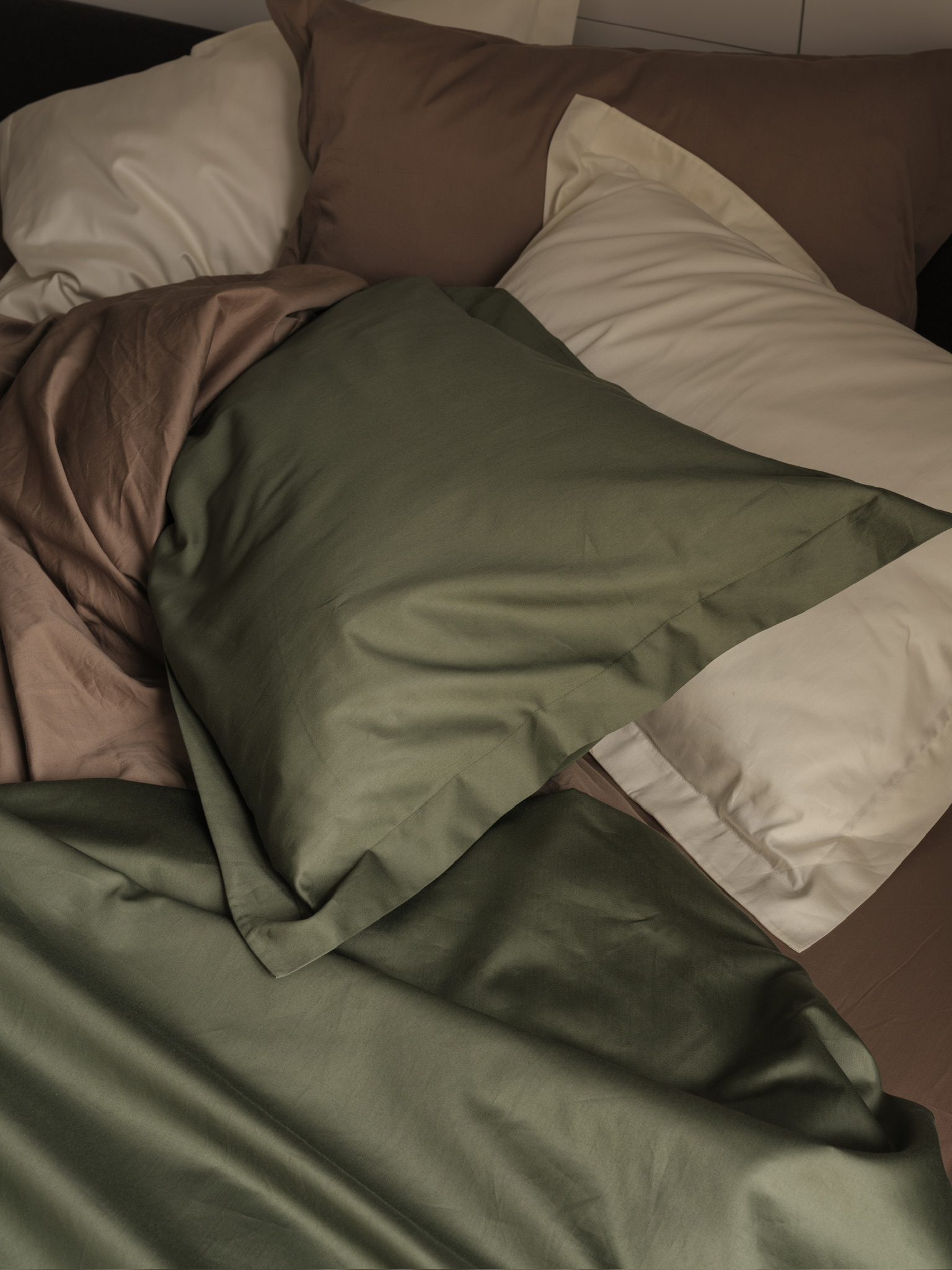 Комбинация наволочек различных цветов позволит создать индивидуальное оформление в вашей спальне.