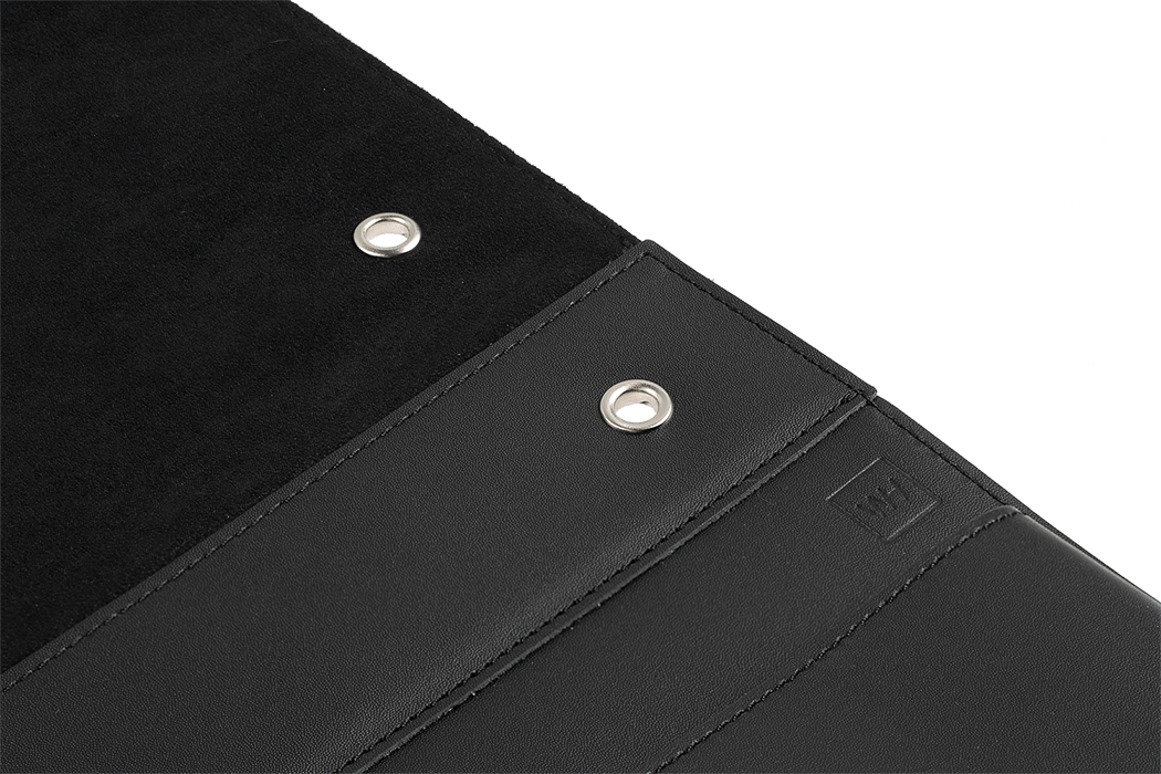В изделии есть 3 лаконичных отделения на кобурных кнопках для вещей разных размеров, которые нужны нам каждый день. На левой стороне расположились два компактных кармана для мелочей, на правой — один большой карман для бутылки воды или вещей побольше.