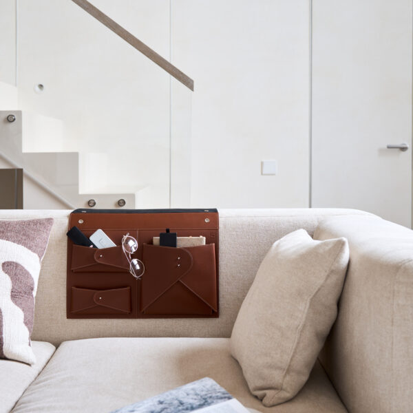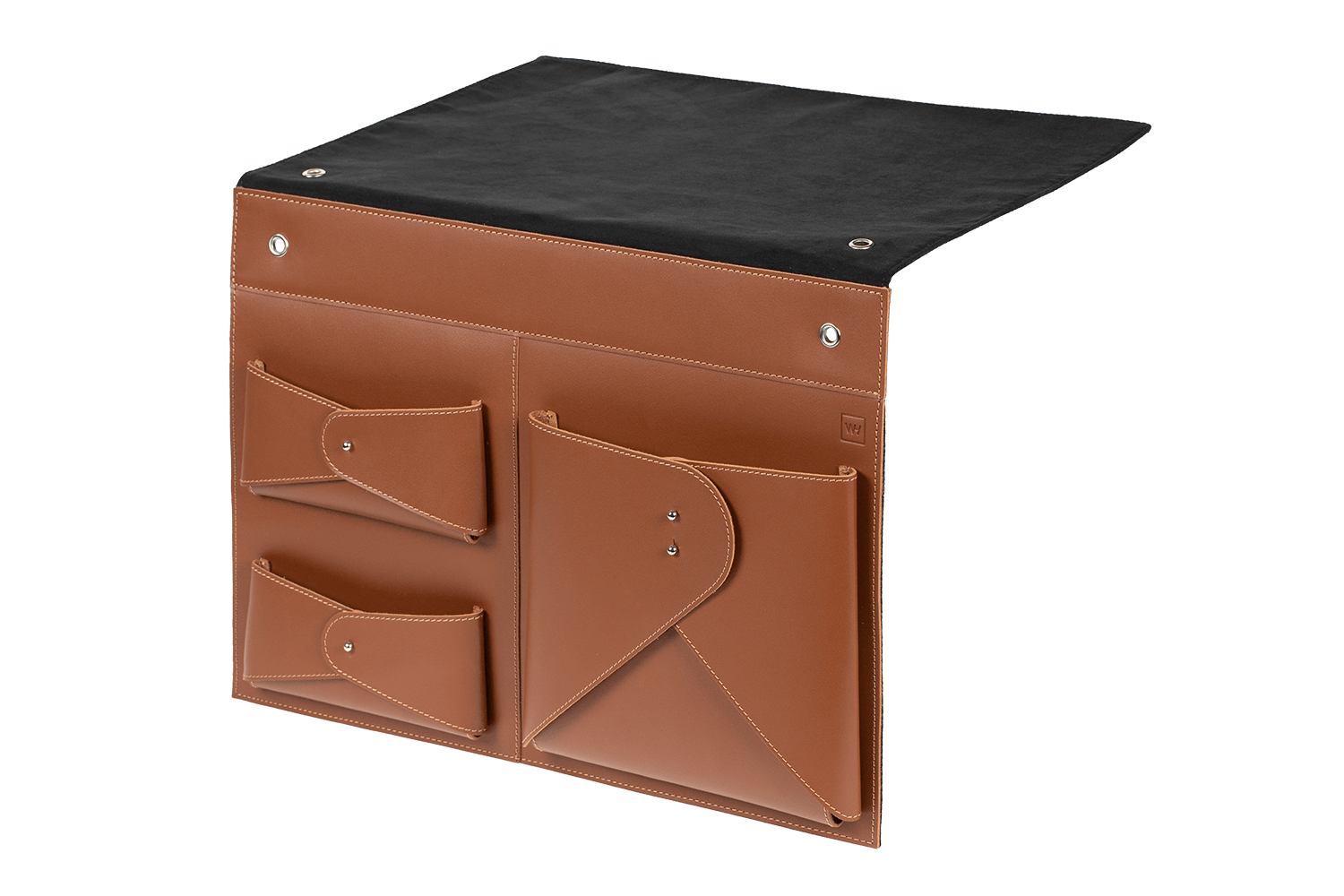 Pockets — органайзер из натуральной плотной кожи «бюргер». Аксессуар разработан для удобства размещения важных мелочей в спальной зоне и в гостиной.