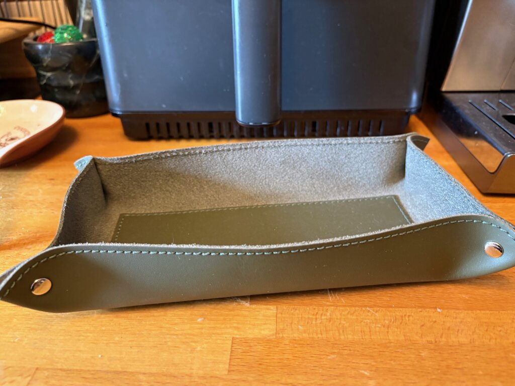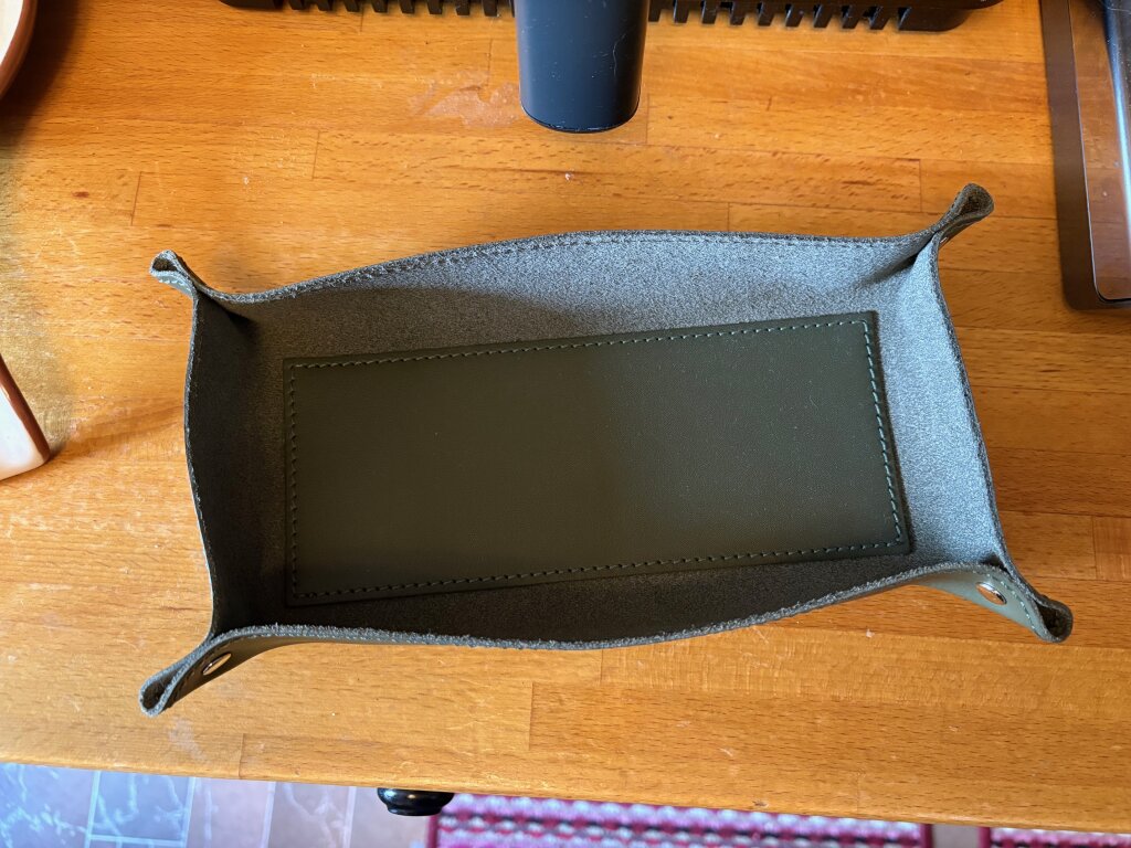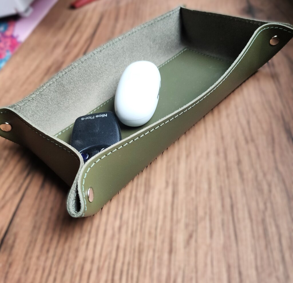 Очень понравилась серия органайзеров на стол! Первый, квадратной формы, получила в подарок. Впечатлил! И когда появился прямоугольный — сразу же заказала! Он такой гладенький и плотненький! Не расхлябанный! Цвет приятный, подойдет подо всё. У меня оливковый. Что хранить в нем еще окончательно не определилась). Но рекомендую однозначно!