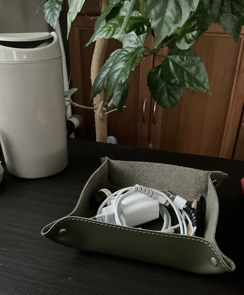 Очень удобный органайзер. У нас их уже два. Используем для хранения зарядок. Стакан для канцелярии, подаренный на день рождения, очень удачно совпал по цвету.!
