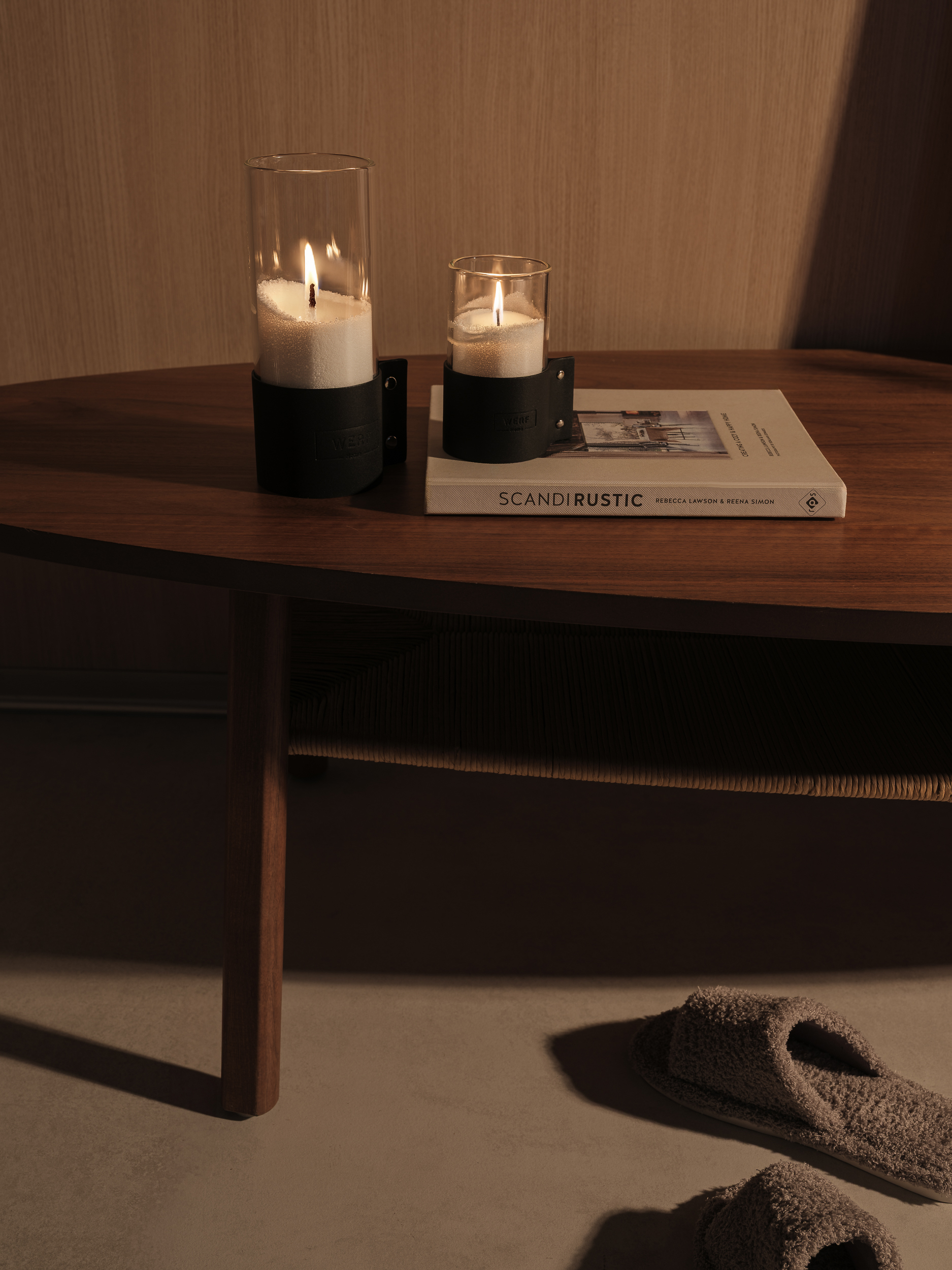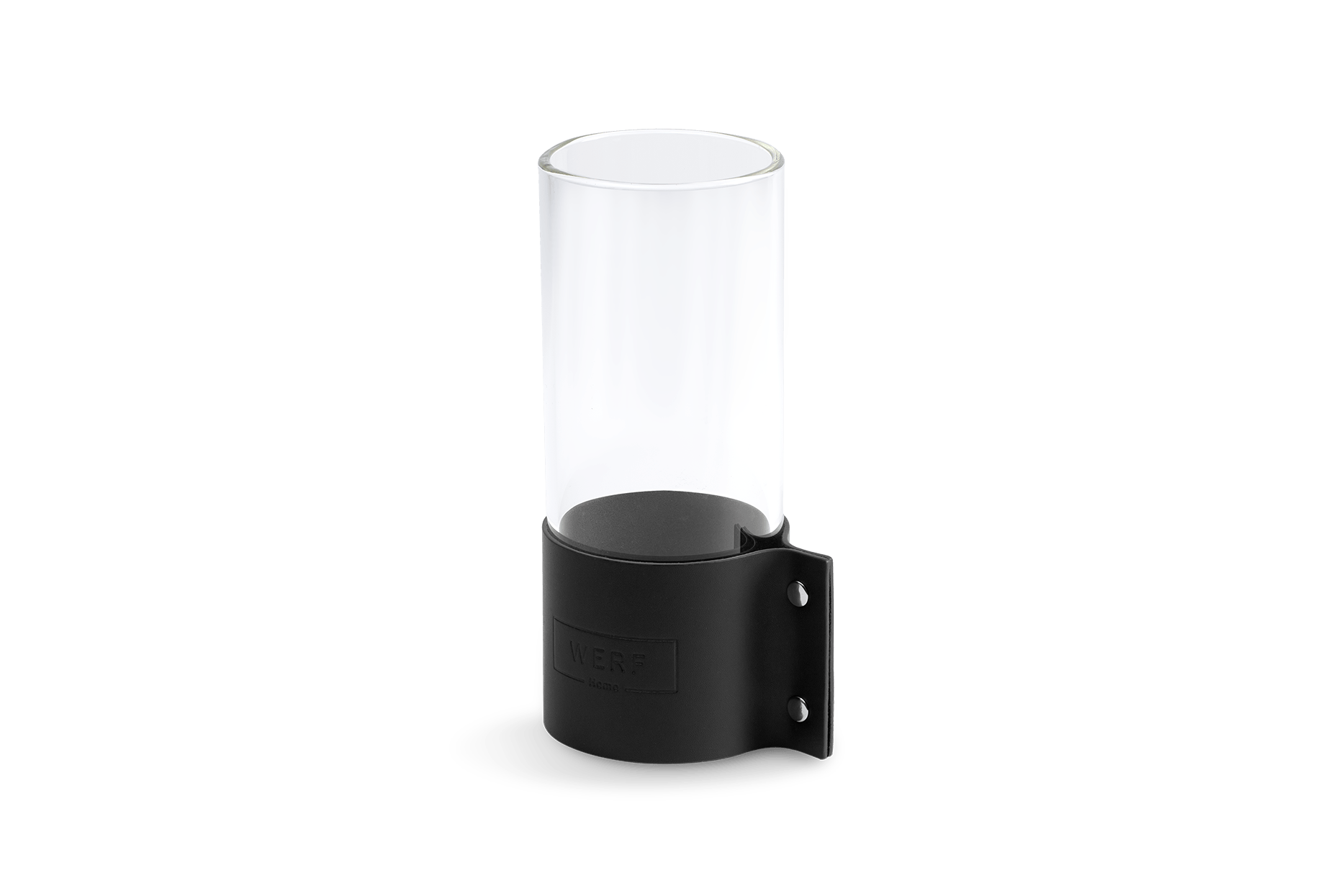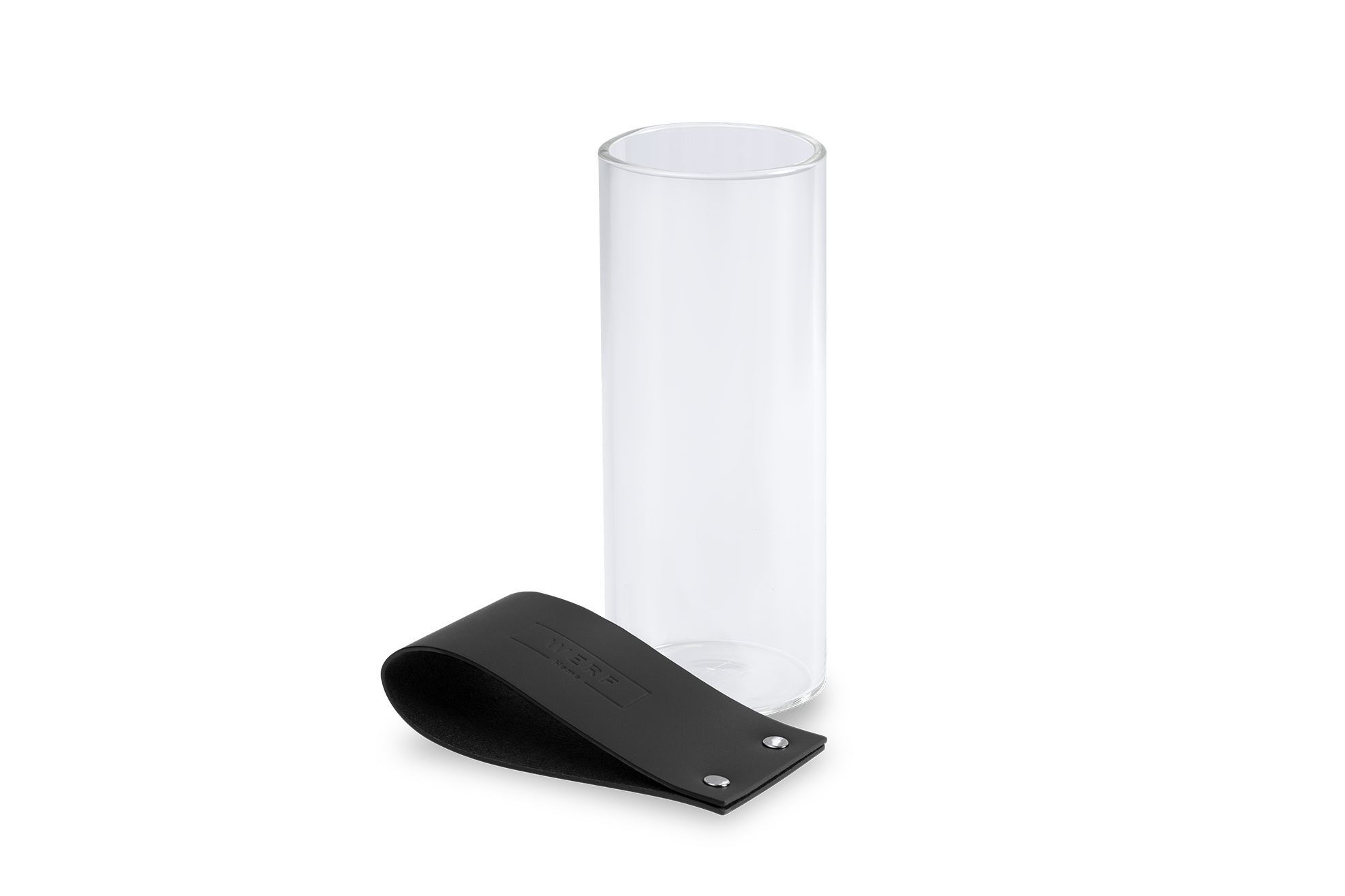 Ваза-подсвечник из боросиликатного термостойкого стекла с кожаным холдером с тиснением.