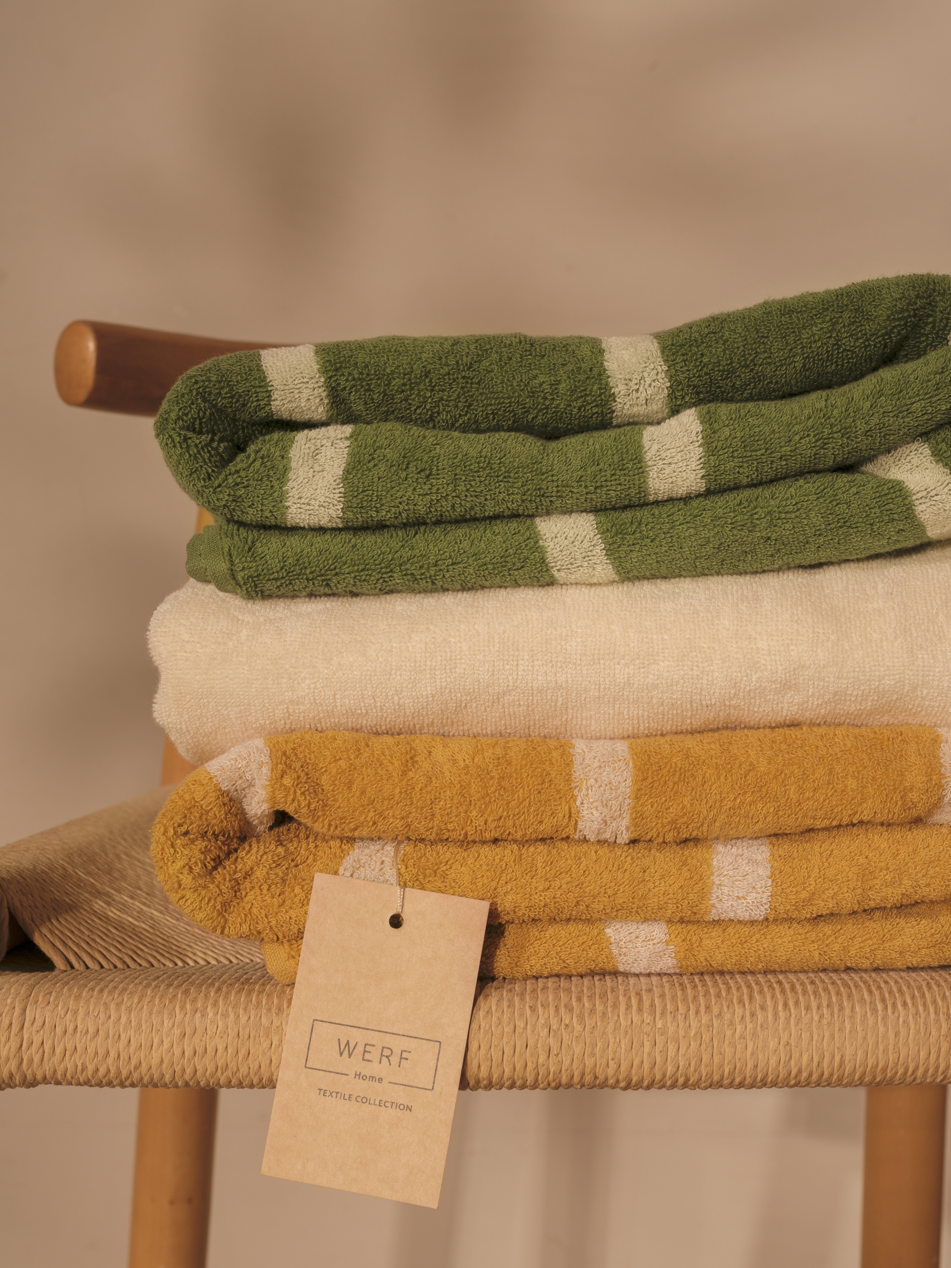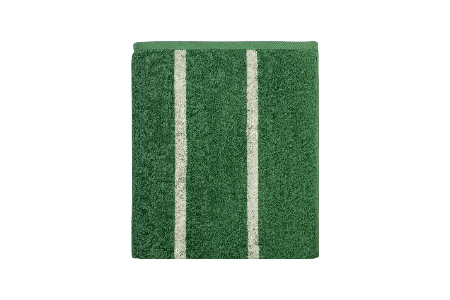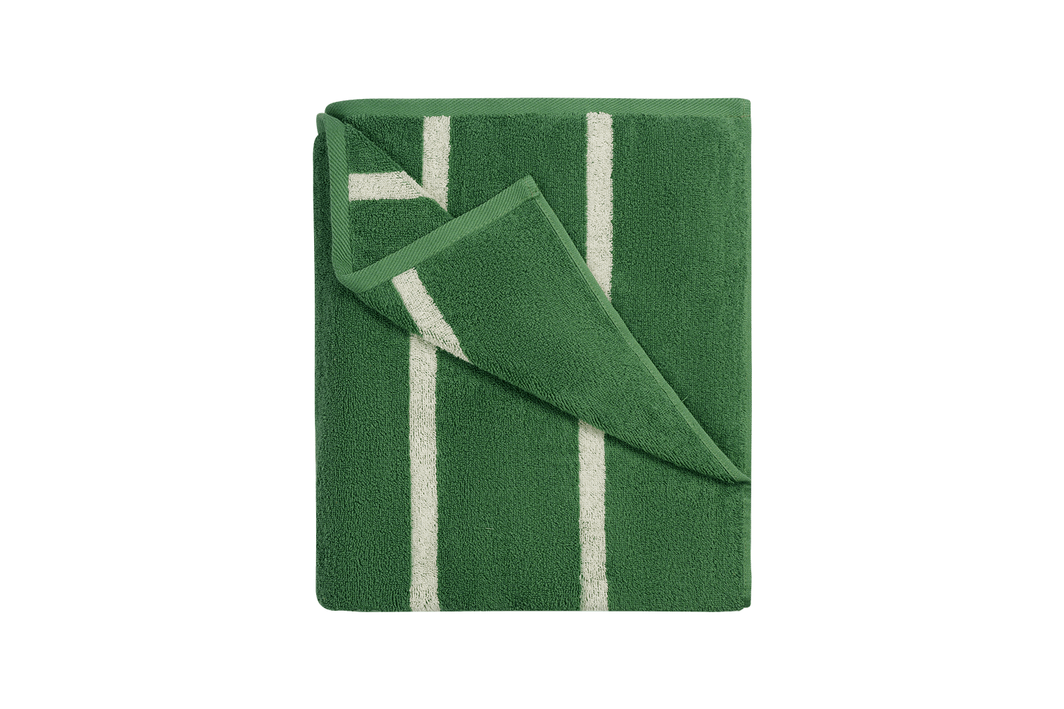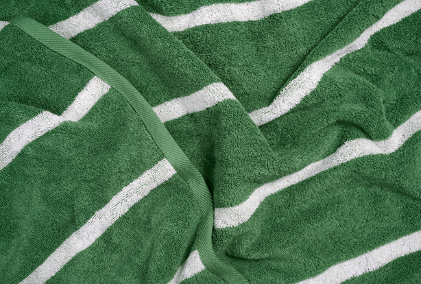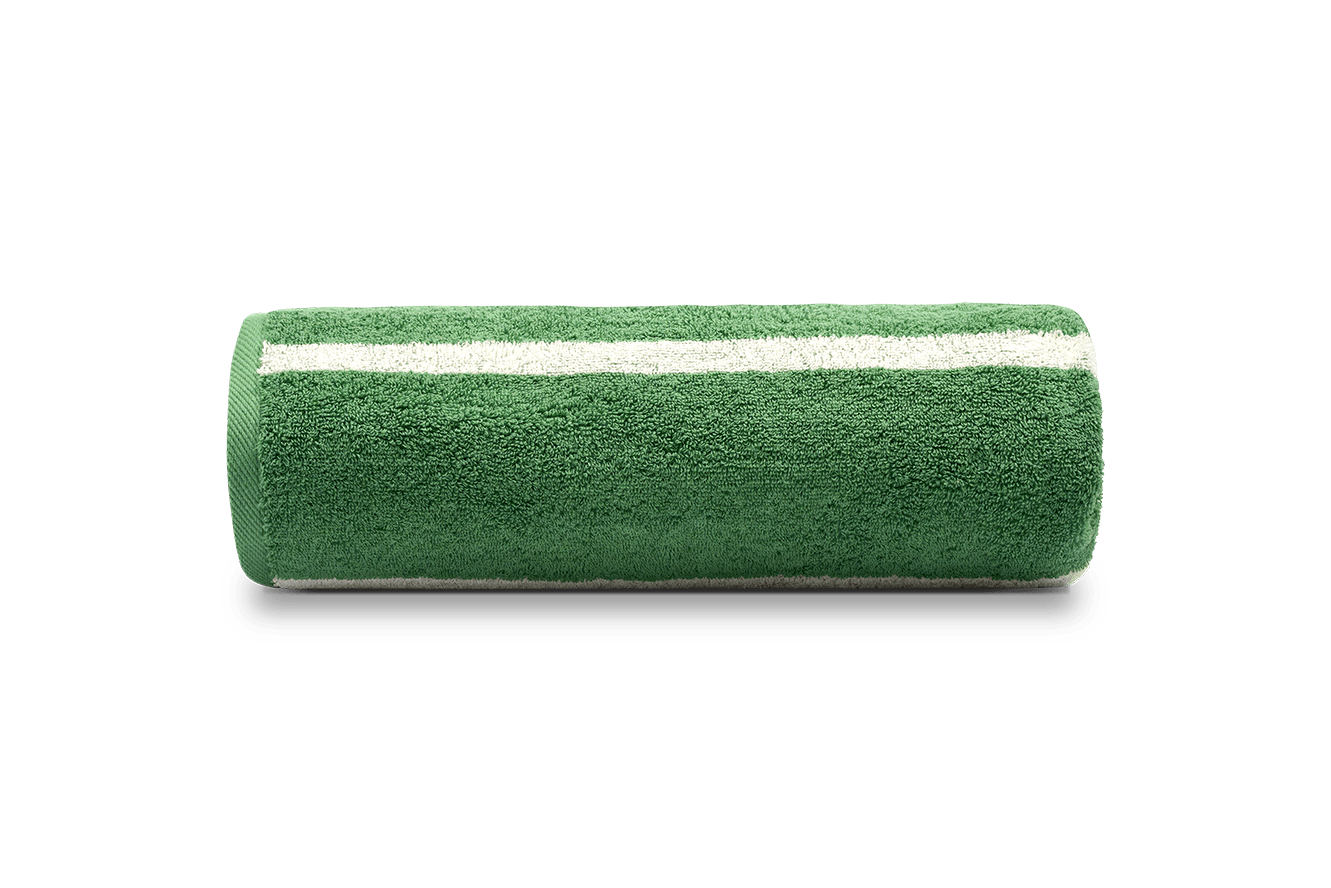 Большое полотенце с контрастной полоской идеально подходит как для пляжа, так и для сауны.