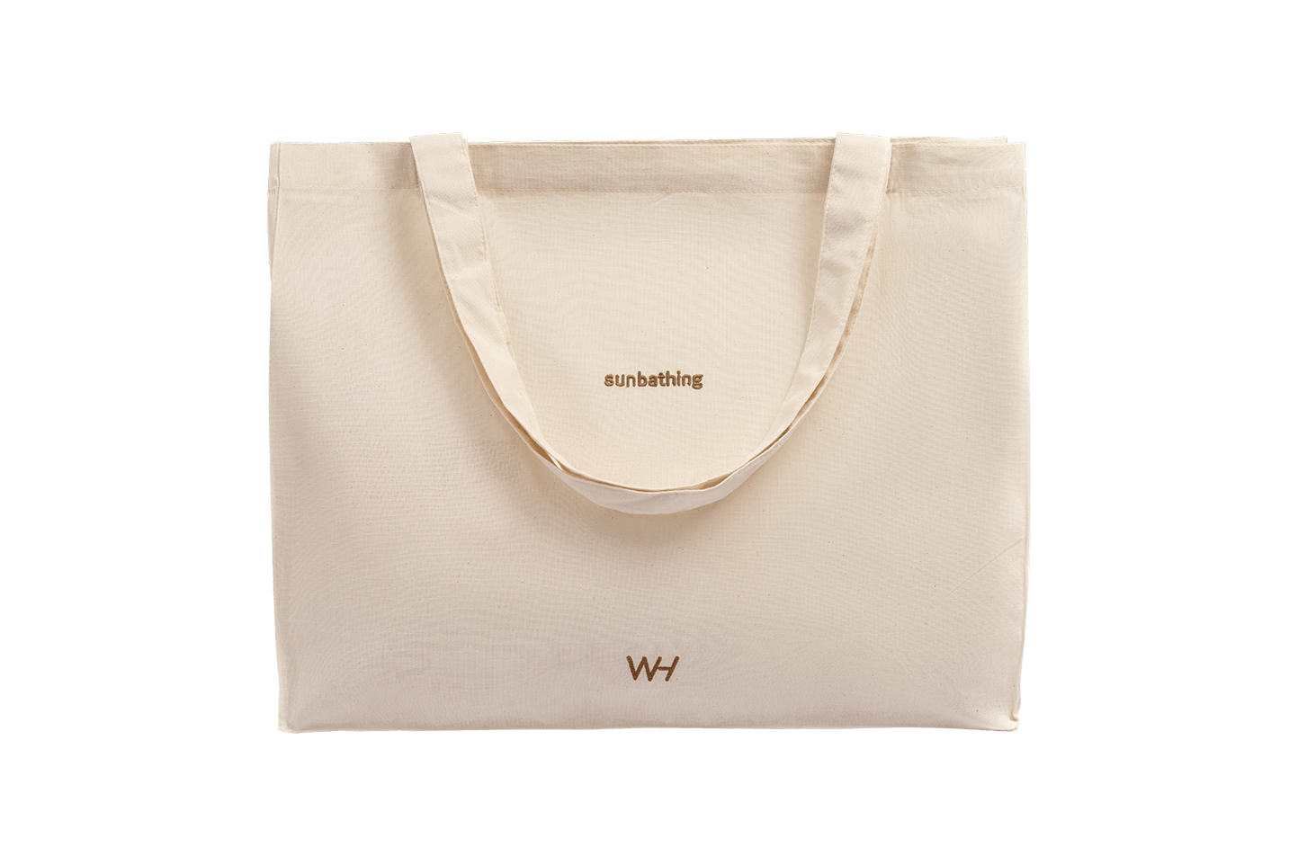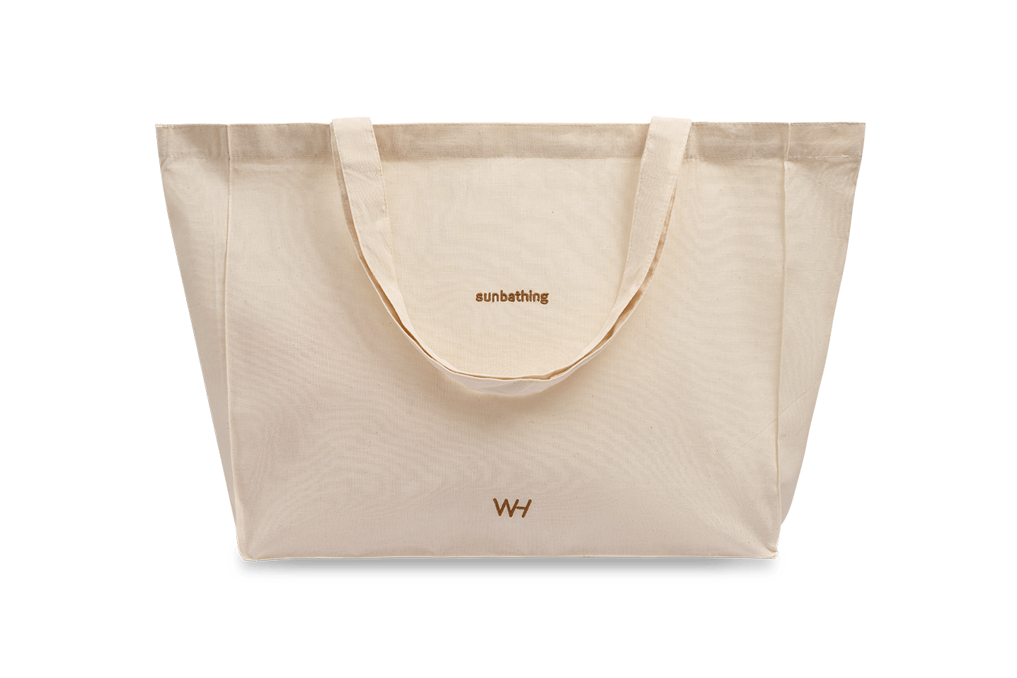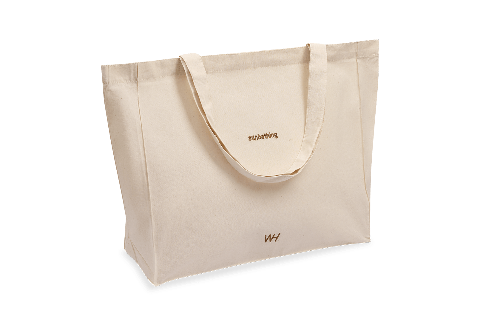 Полотенце упаковано в пляжный шоппер с логотипом бренда.