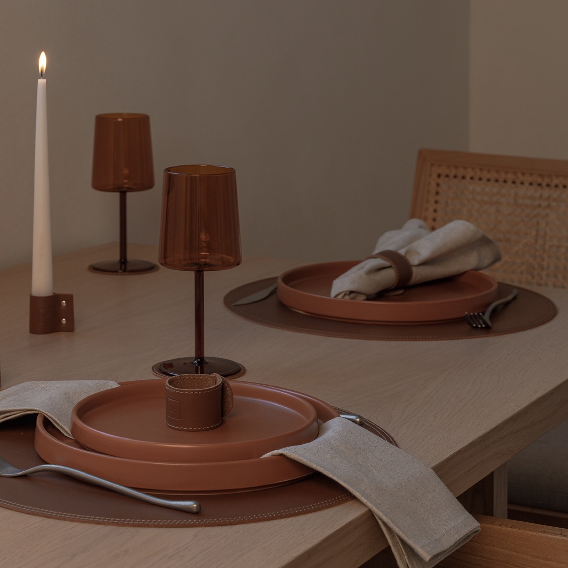 — кожаная салфетка будет хорошо смотреться как круглый подтарельник при сервировке стола;