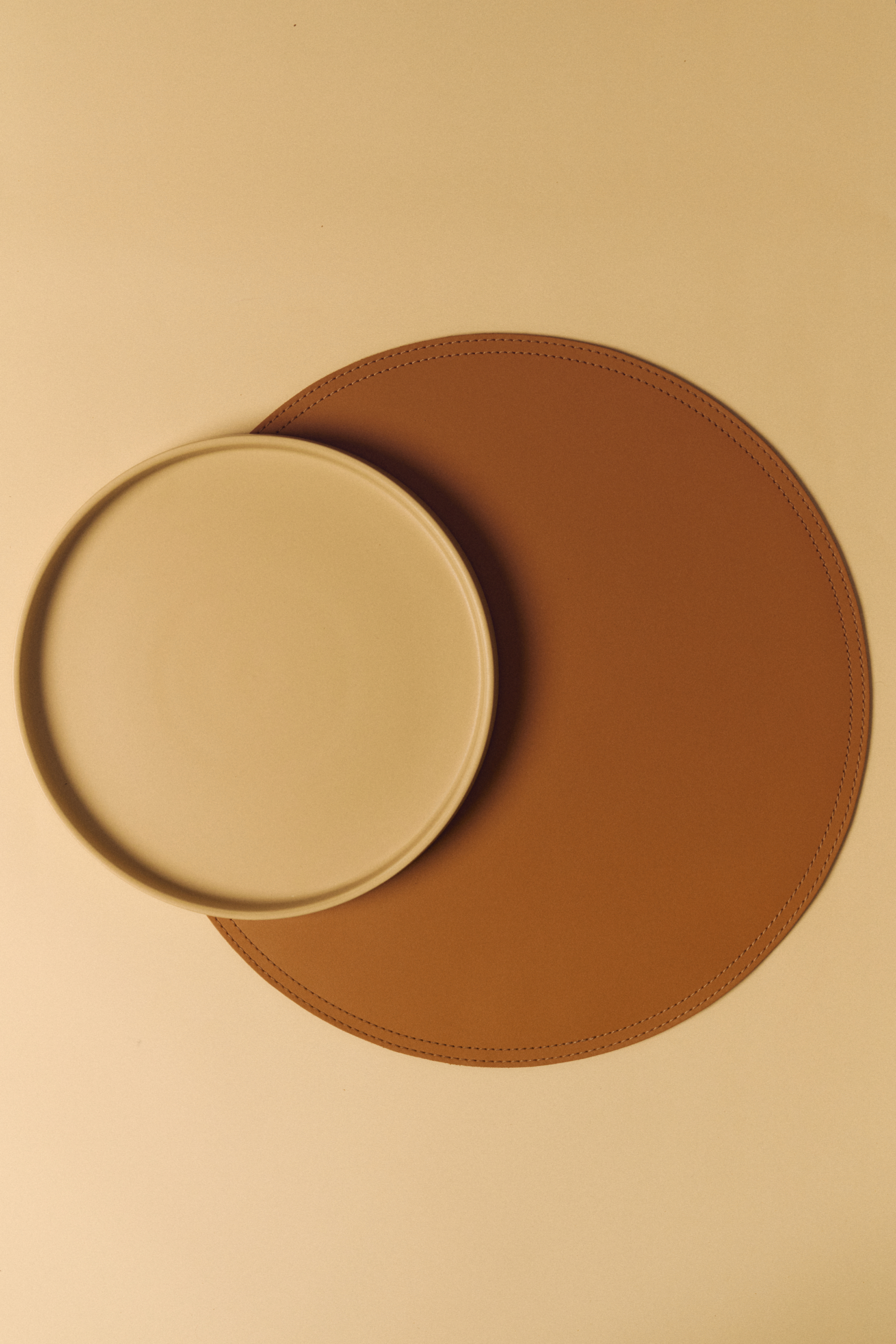 — кожаная салфетка будет хорошо смотреться как круглый подтарельник при сервировке стола;
