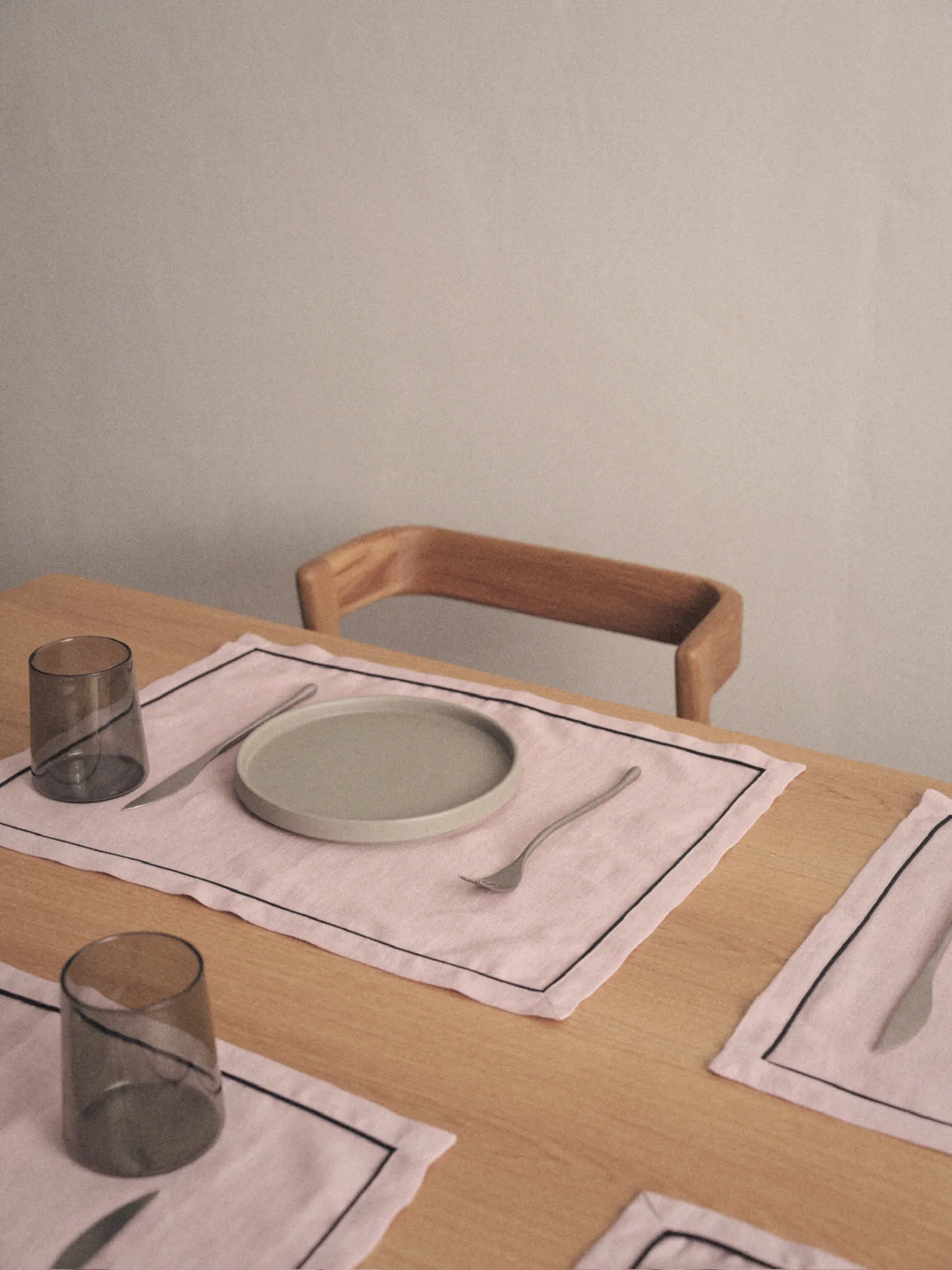 Салфетки нежного цвета "пыльная роза" добавят элегантности в вашу сервировку. Мягкий розоватый оттенок создаст романтичную атмосферу, а контрастный черный кант добавит стильный акцент. Идеально подходит для романтических ужинов и праздничных трапез.