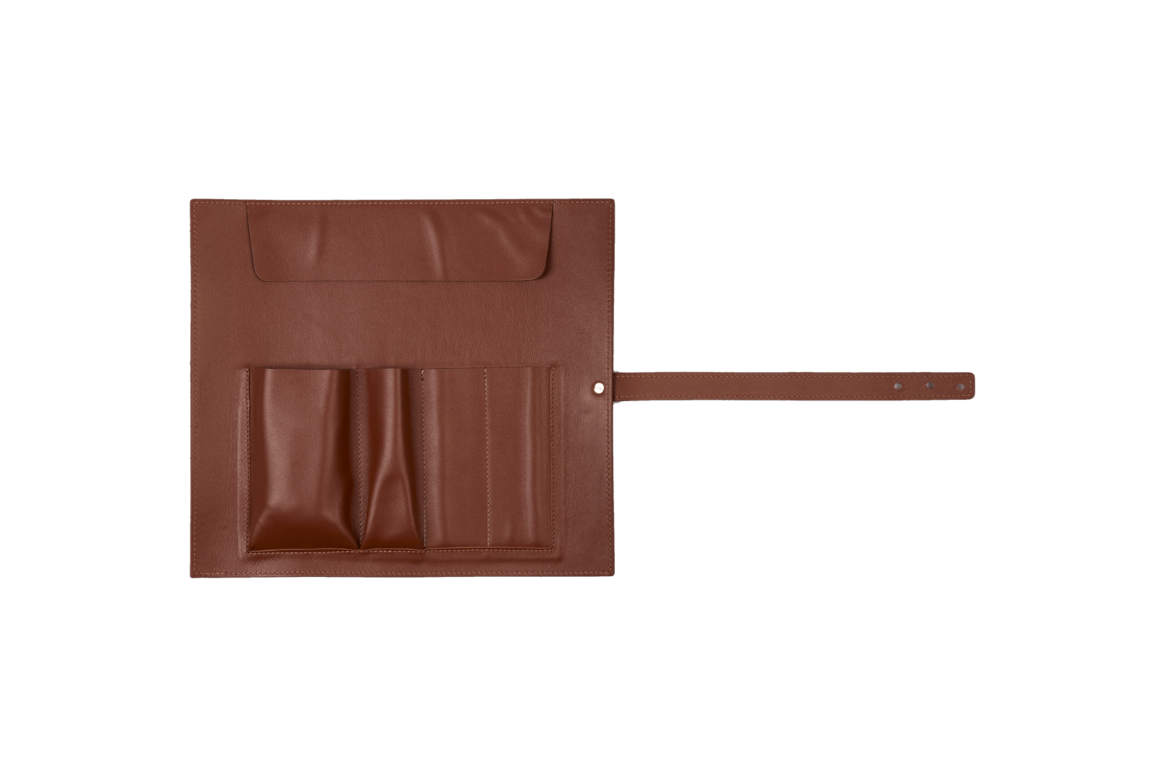 Пенал легко скручивается и фиксируется кожаным ремешком на разный диаметр, что позволяет подстраивать толщину скрутки под количество аксессуаров и инструментов. Широкий кожаный ремешок плотно фиксируется с помощью хольнитена.