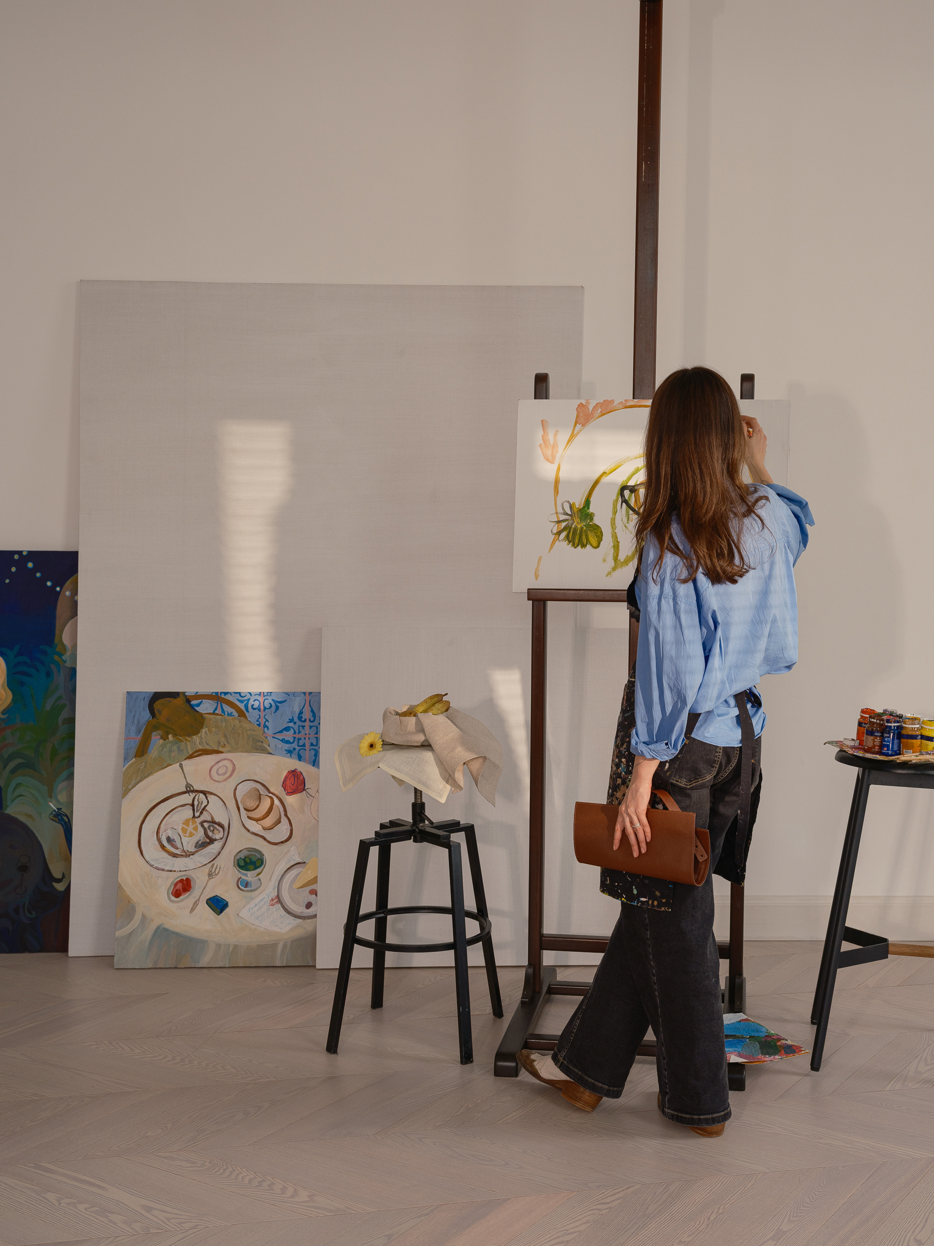Кармашки, расположенные в один ряд, позволяют организовать удобное вертикальное хранение принадлежностей. Чехол для кисточек имеет 3 кармашка по 4,7 см и 1 карман размером 8 см, который можно использовать для размещения широких инструментов. В верхней части изделия предусмотрен откидной козырек, предотвращающий выпадение принадлежностей и защищающий содержимое от внешних загрязнений.