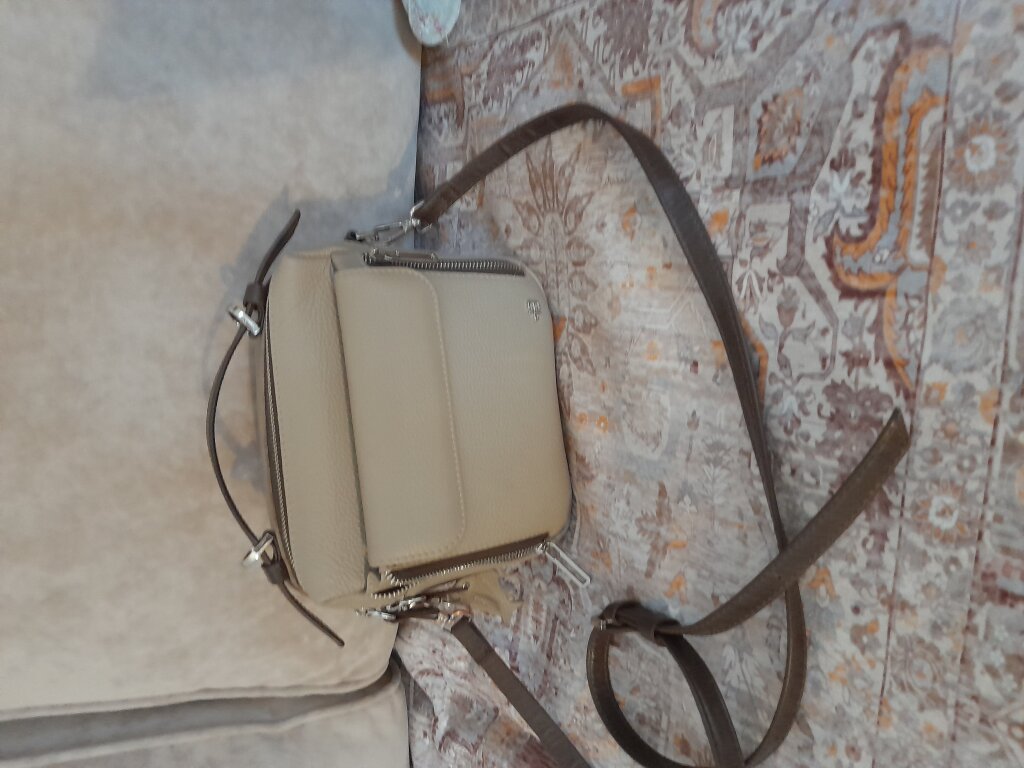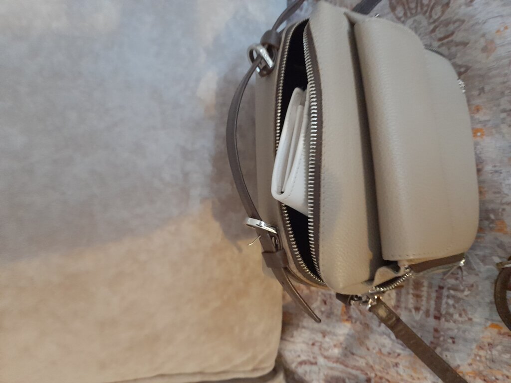 Сумочка очень хорошая, красивый бежевый цвет, приехала через неделю. Но, к сожалению, качество длинного ремня, как будто его уже использовали либо кожа на нем плохого качества. Немного не приятно, конечно.