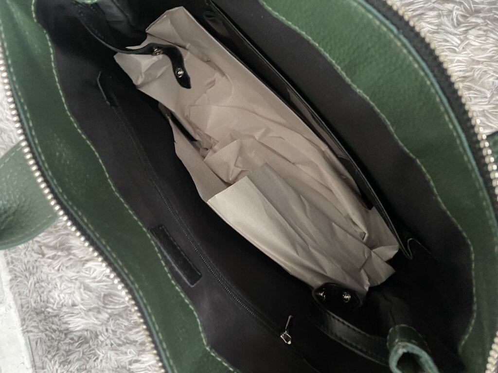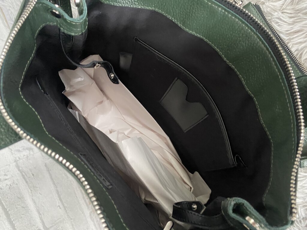 Отличная сумка, купила в цвете green, он очень красивый, глубокий зелёный — то, что нужно на каждый день. Сумка удобная, очень вместительная, все продумано до деталей: мне очень пригодился держатель (карман) для ручки и для карты. Отдельная благодарность менеджеру Дарье за внимание и быстоту, за помощь и доброжелательность. Спасибо команде за стильную, красивую и удобную сумку