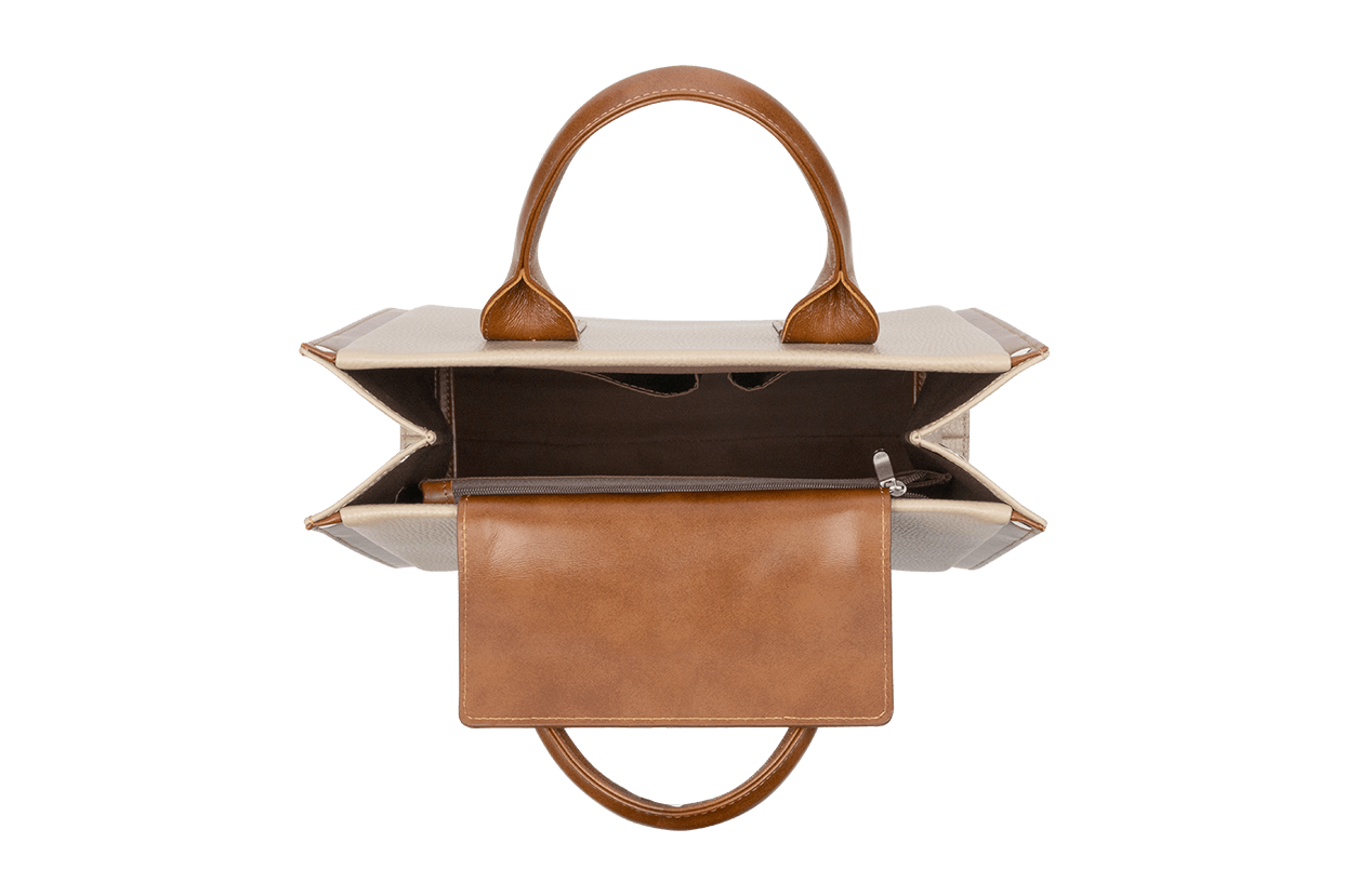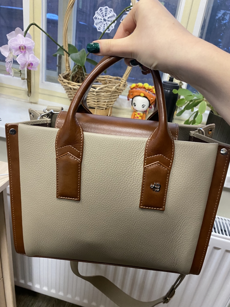 Подарила себе эту сумку на Новый Год, и я скажу, что это тот случай, когда ожидала не того и осталась довольна. Поясню — на фото цвет корпуса сумки кажется более светлым, в реальности это больше серо-бежевый цвет, но он мне даже больше пришёлся по вкусу. Верхняя застёжка магнитная, расположена не сверху, а вовнутрь и это невероятно удобно. Радует наличие «ножек» на дне сумки и большого количества карманов, что делает её очень функциональной. Качество исполнения на высоте, все прошито и все сделано аккуратно.