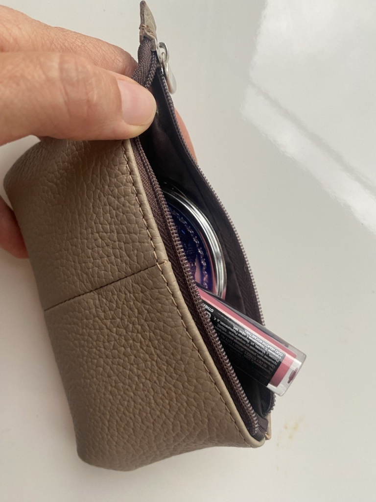 Использую не по назначению, складываю туда только ключи, пару карточек и зеркальце, когда нет необходимости в рюкзаке или сумке. Отлично подходит для этого и удобно держится в руке.